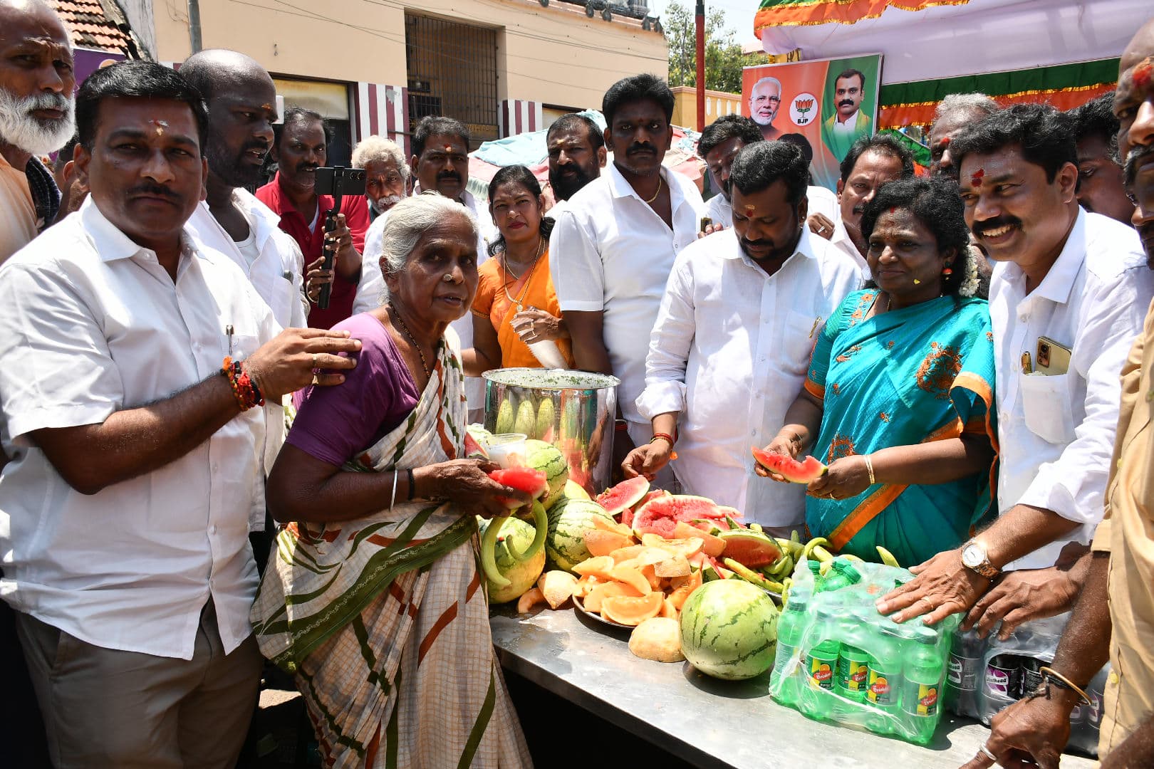 திருவொற்றியூரில் உள்ள அருள்மிகு தியாகராஜ சுவாமி திருக்கோயிலில் பாஜக கட்சியை சேர்ந்த தமிழிசைவசவுந்தரராஜன் சுவாமி தரிசனம் செய்தார். பின்னர் பாஜக வடசென்னை கிழக்கு மாவட்டம் சார்பில் நடைபெற்ற தண்ணீர் பந்தல் திறப்பு நிகழ்ச்சியில் கலந்து கொண்டு பொதுமக்களுக்கு தர்பூசணி, மோர், குளிர்பானங்களை வழங்கினார்.