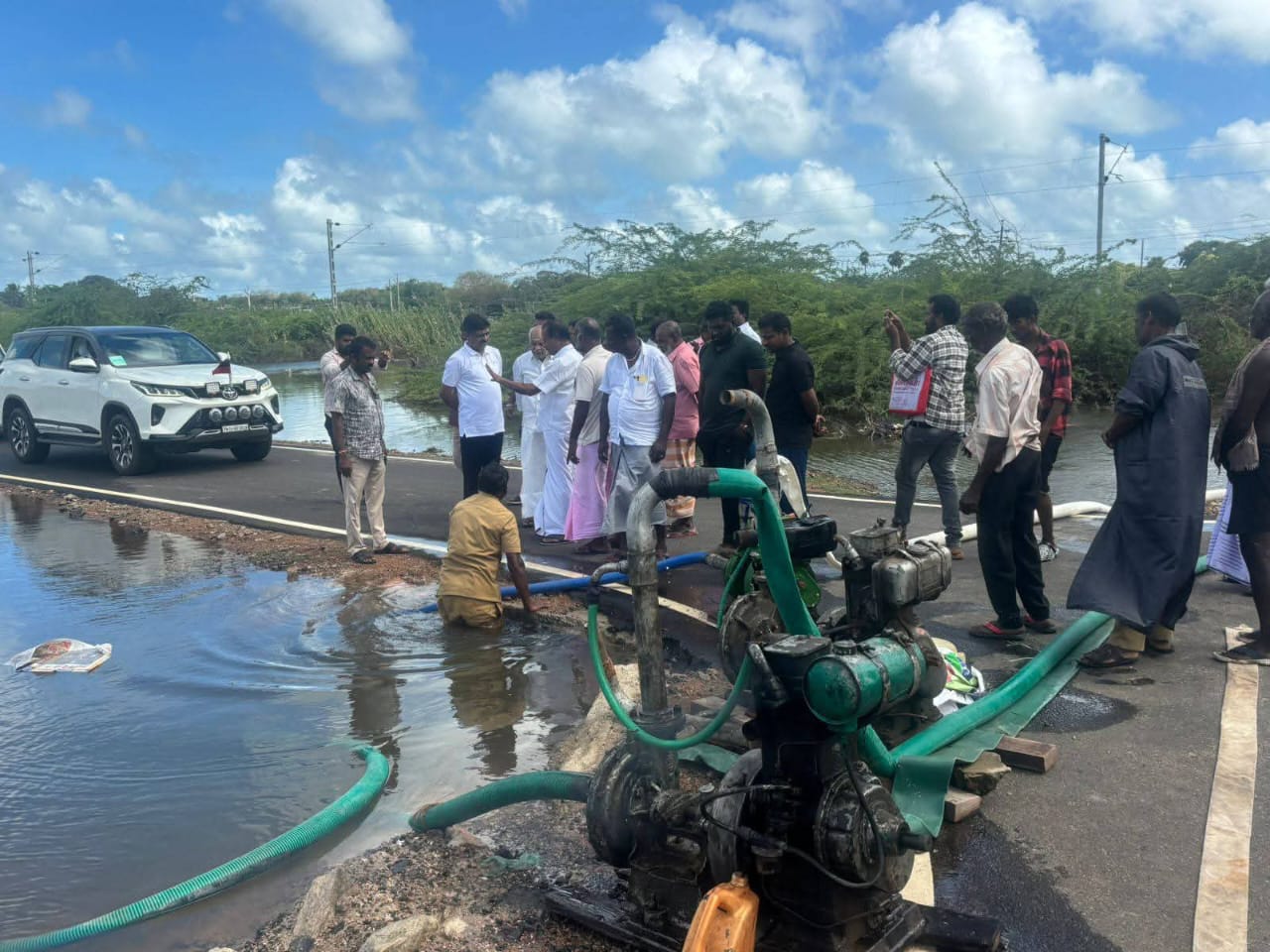 இராமநாதபுரம் மாவட்டத்தில் அதிக மழைபொழிவை செய்த இராமநாதபுரம் சட்டமன்ற தொகுதி மண்டபம் கலைஞர் நகரில் சாலையை சுற்றி தேங்கியுள்ள மழைநீரை அகற்றும் பணியை ஆய்வு மேற்கொண்டு நேரடியாக இருந்து தேவையான நடவடிக்கையை எடுத்தார் இராமநாதபுரம் திமுக மாவட்ட கழக செயலாளரும் சட்டமன்ற உறுப்பினருமான காதர்பாட்சா முத்துராமலிங்கம்