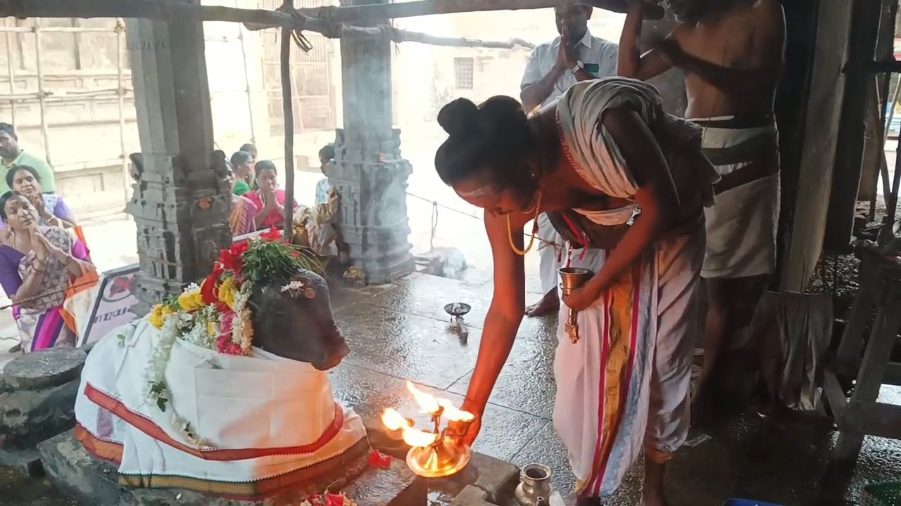 முன்பு ஒரு காலத்தில் மருத்துவா சூரன் என்ற அசுரன் தனது தவ வலிமையால் சிவபெருமானிடம் காட்சி பெற்று சூலாயிரத்தை பெற்றார் அந்த சூலாயுதத்தால் தேவர்களுக்கும் அச்சுறுத்தலை ஏற்படுத்தினான். அப்போது நந்தி பகவான் சென்று மருத்துவர சூரனிடம் முறையிட்ட போது மருத்துவா சூரன் சூலாயத்தால் நந்தி பகவானையும் தாக்கினார் அந்த சூலாயத்தால் தாக்கப்பட்ட வடுக்கள் தற்போது இக்கோவிலில் உள்ள நந்தி சிலையின் மீது உள்ளது குறிப்பிடத்தக்கது. பிரசித்தி பெற்ற இந்த நந்தி பகவானுக்கு பங்குனி மாத பிரதோஷத்தை ஒட்டி மா பொடி, மஞ்சள் ,திரவியப்பொடி, பால் ,தயிர், இளநீர், பன்னீர் ,பஞ்சாமிர்தம், சந்தனம், பழச்சாறு முதலான நறுமண வாசனை திரவிய பொருட்களைக் கொண்டு சிறப்பு அபிஷேகம் செய்யப்பட்டது. தொடர்ந்து அலங்காரம் செய்யப்பட்டு மகாதீபாரதனை காட்டப்பட்டது.