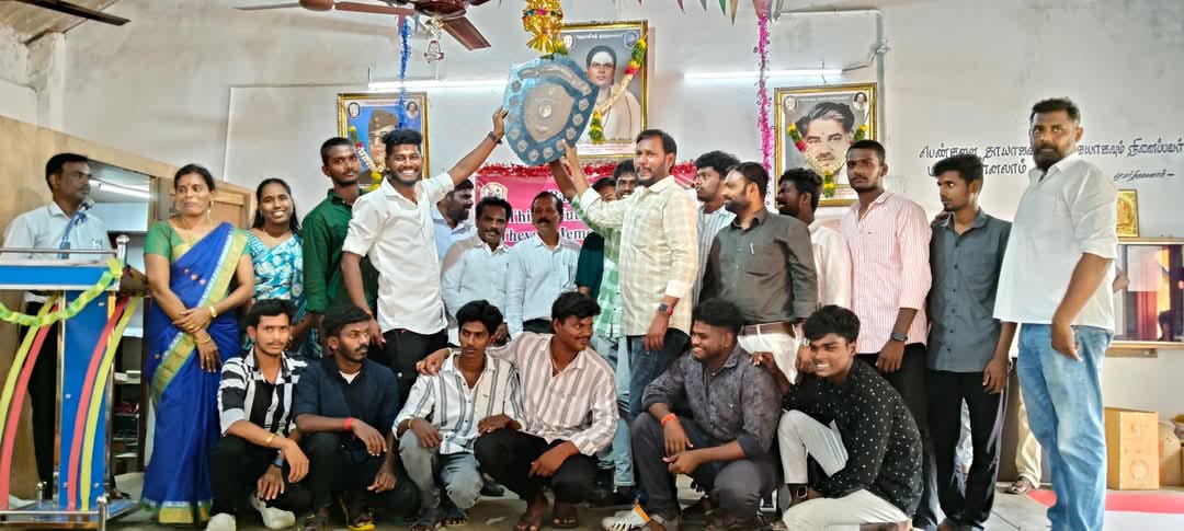 விளையாட்டுப் போட்டியில் ஒட்டுமொத்த சாம்பியன் பட்டம் பெற்ற ஆங்கிலத்துறை மாணவர்களுக்கு வெற்றி கோப்பை வழங்கப்பட்டது.
