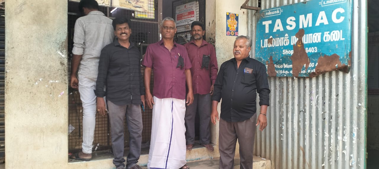 அரியலூர் மாவட்ட தமிழ்நாடுடாஸ்மாக் விற்பனை யாளர் நல சங்கம் மாநில சிறப்பு தலைவர்கு.பாரதிஅறிவுறுத்தலின்படி,நல சங்கத்தின் அரியலூர் மாவட்ட செயலாளர் ஏ பி நடராஜன் தலைமையில் ,இரயில்வே கேட் கடை எண் 6403 முன்பு டாஸ்மாக் பணி நிரந்தரம், அரசு ஊழியர்களுக்கு இணையான ஊதியம், உள்ளிட்ட கோரிக்கைகளை வலியுறுத்தி, கடையின் விற்பனையாளர்கள்,கருப்பு சட்டை,தங்களது சட்டையில் கருப்பு பேட்ஜ்,அணிந்து பணி புரிந்து வருவதை படத்தில் காணலாம்.இதே போல கல்லங் குறிச்சி ரோட்டிலுள்ள டாஸ்மாக் கடை முன்பு, மாநில தலைமையின் கோரிக்கையை தமிழக அரசு நிறைவேற்ற வலியுறுத்தி,நல சங்கத்தின் மாவட்ட அமைப்புச் செயலாளர் மு கருணாநிதி தலைமையில், , விற்பனை யாளர்கள் கருப்பு பேட்ஜ் அணிந்து விற்பனை பணியில் ஈடுபட்டு வருகின்றனர்.