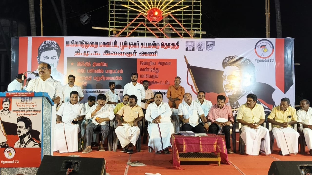 மயிலாடுதுறை மாவட்டம் திமுக இளைஞரணி சார்பாக மாபெரும் கண்டன பொதுக்கூட்டம் நடைபெற்றது.