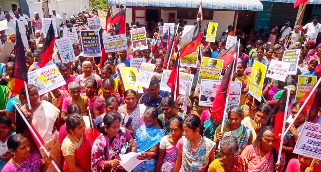 தஞ்சாவூர் மாவட்டம் பாபநாசம் அருகே பசுபதிகோவிலில் 100நாள் வேலைத் திட்டத்தில் தமிழகத்திற்கு மத்திய அரசு தரவேண்டிய ரூ.4034 கோடி நிதியை வழங்காமல் தமிழ்நாட்டை தொடர்ச்சியாக வஞ்சித்து வரும் ஒன்றிய பாசிச பாஜக அரசைக் கண்டித்து தஞ்சை வடக்கு மாவட்டம் பாபநாசம் தெற்கு ஒன்றியம் சார்பில் தெற்கு ஒன்றிய செயலாளர் நாசர் தலைமையில் மாபெரும் கண்டன ஆர்ப்பாட்டம் நடைபெற்றது.