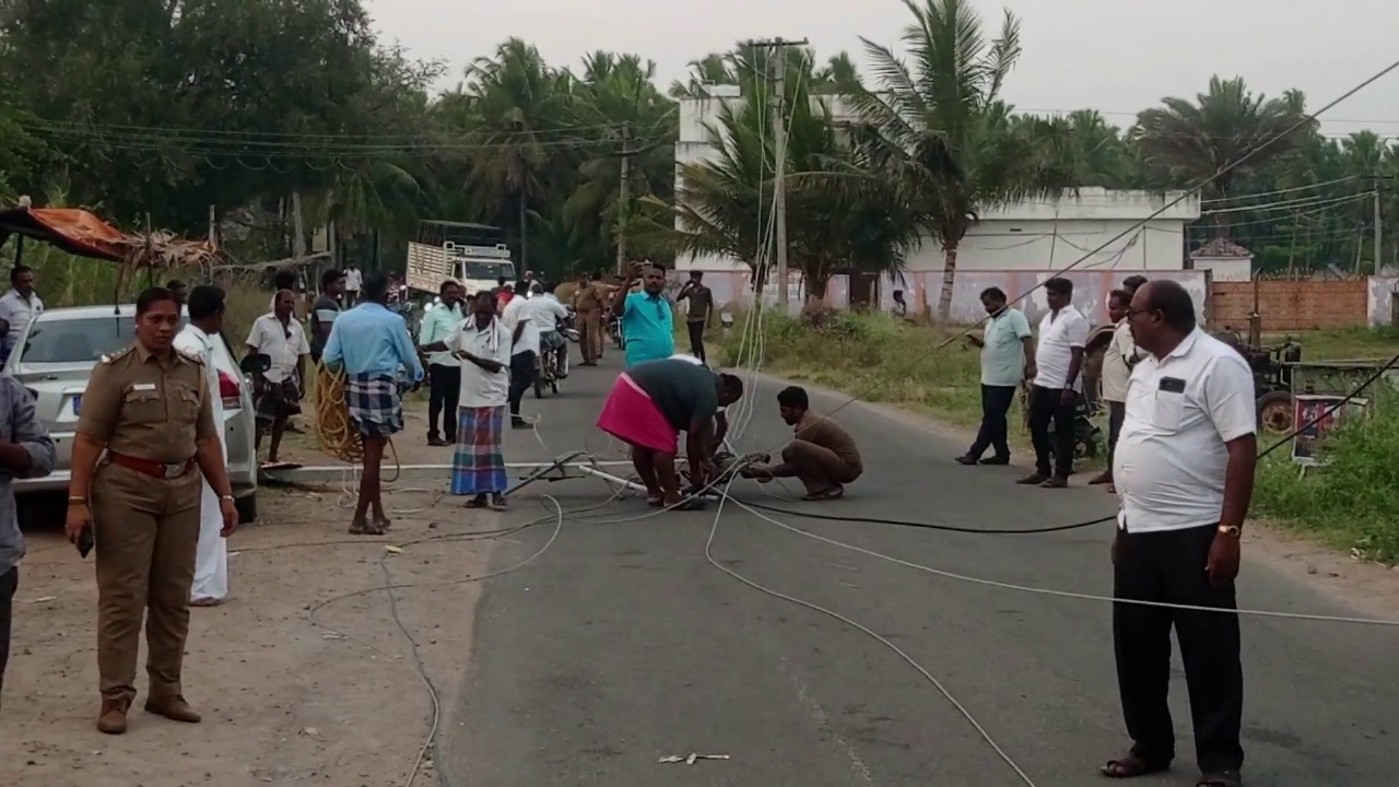 பின்னர் விரைந்து வந்த போச்சம்பள்ளி மின்வாரிய அலுவலர்கள் உடனடியாக மின்சாரத்தை துண்டித்து, உடைந்த மின்கம்பத்தை அகற்றினர். சுமார் அரை மணி நேரத்திற்கு பிறகு போக்குவரத்து சீர் செய்யப்பட்டது. விபத்து குறித்து போலீசார் விசாரித்து வருகின்றனர்.