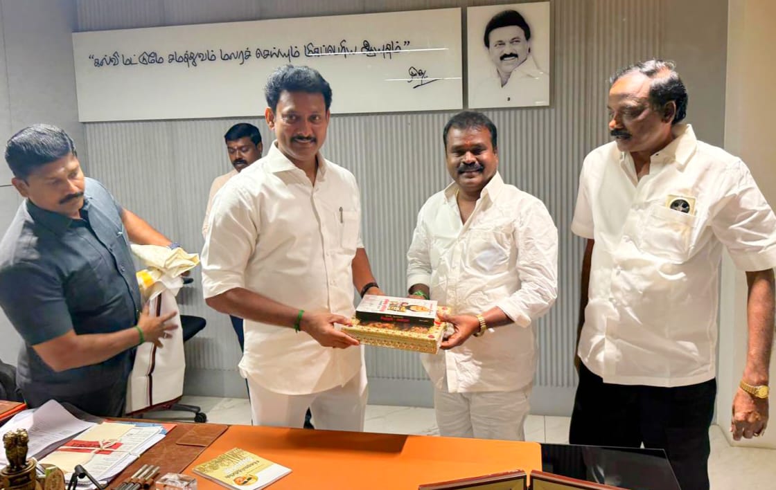 திமுக காஞ்சி தெற்கு மாவட்டம் உத்திரமேரூர் சட்டமன்ற உறுப்பினரும் காஞ்சி தெற்கு மாவட்ட செயலாளருமான க.சுந்தர் ஆலோசனைப்படி பள்ளி கல்வித்துறை அமைச்சர் அன்பில் மகேஷ் பொய்யாமொழி அவர்களை ஆதி திராவிடர் நலத்துறை துணை அமைப்பாளர் ஜி.சிவகுமார் மரியாதை நிமித்தமாக நேரில் சந்தித்து வாழ்த்து தெரிவித்தார். ஒன்றிய குழு பெருந்தலைவர் ஒருத்தி கே.கண்ணன்