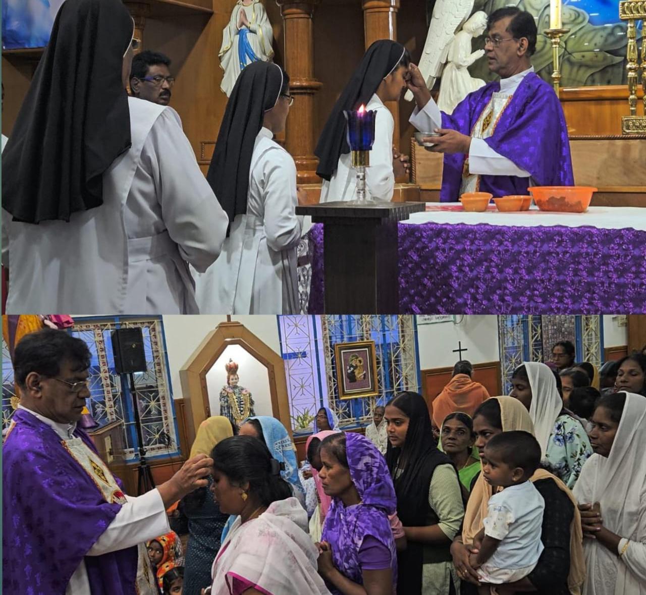 இத்திருப்பலியில் ஆலையத்தின் அருட்சகோதரிகள், பங்கு மக்கள் ஏராளமானோர் திருப்பலியில் பங்கேற்றனர்.பின்னர் பங்கு தந்தை மற்றும் அருட்சகோதரிகள் ஆலையத்திற்கு வந்த அனைவருக்கும் சிலுவை அடையாள சாம்பல் பூசினார்கள்.