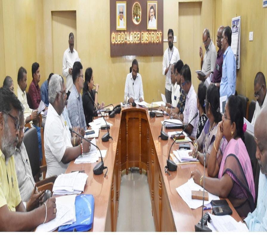 கடலூர் மாவட்ட ஆட்சியர் அலுவலக கூட்டரங்கில் பொதுமக்களிடமிருந்து பல்வேறு முகாம்களில் பெறப்பட்ட மனுக்கள் மீது மேற்கொள்ளப்பட்ட நடவடிக்கைகள் குறித்து துறை அலுவலர்களுடன் ஆய்வுக்கூட்டம் மாவட்ட ஆட்சித்தலைவர் சிபி ஆதித்யா செந்தில்குமார் தலைமையில் நேற்று நடைபெற்றது.