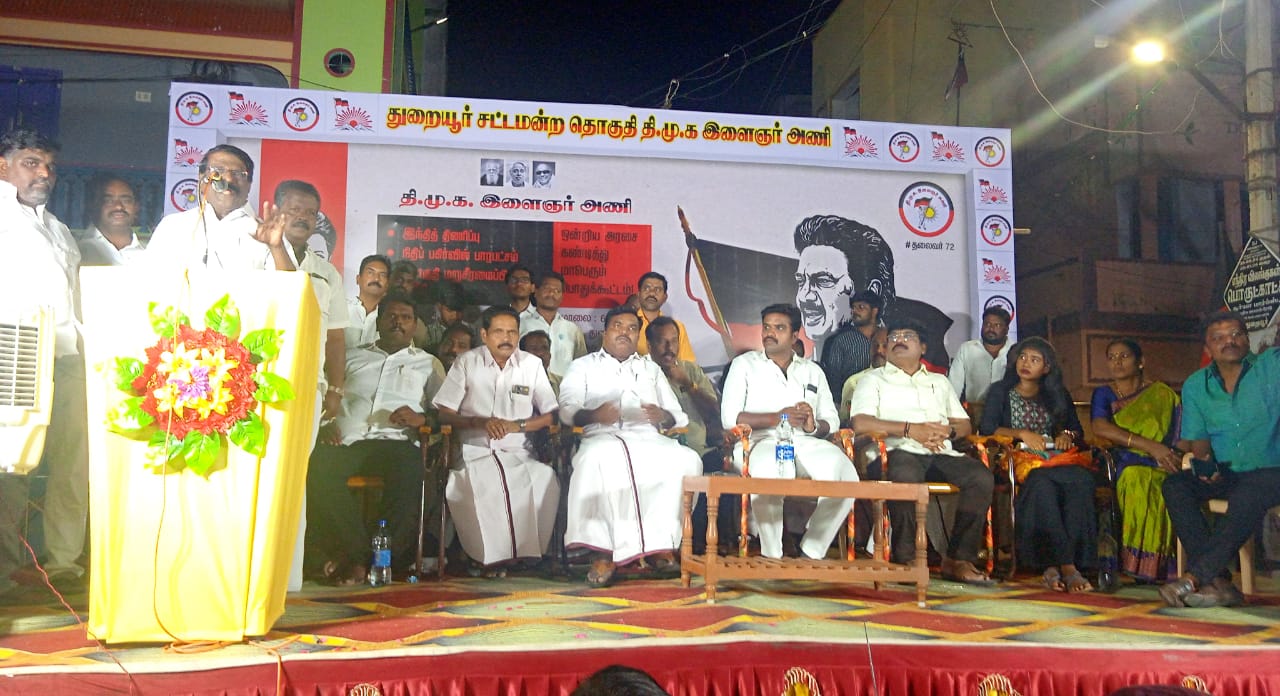 துறையூரில் திமுக இளைஞர் அணி சார்பில் மாபெரும் கண்டன பொதுக்கூட்டம்