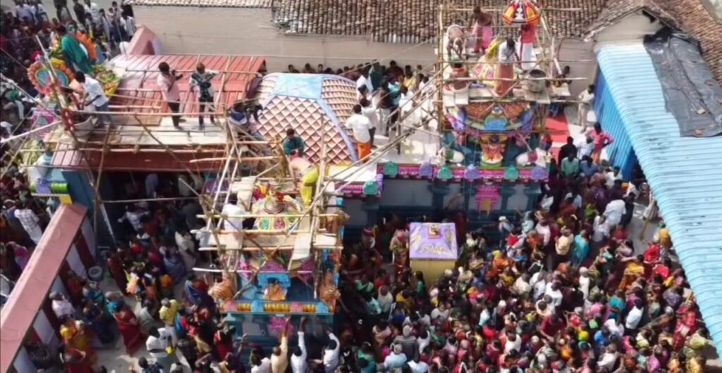 4ம் கால யாகசாலை பூஜைகள் நிறைவடைந்து பூர்ணாஹுதி மகா தீபாராதனை காட்டப்பட்டது. அதனை தொடர்ந்து யாகசாலையில் இருந்து கடம் புறப்பாடு செய்யப்பட்டு மங்கள வாத்தியங்கள் முழங்க கோவிலை சுற்றி வலம் வந்து விமான கும்பத்தை அடைந்தது.