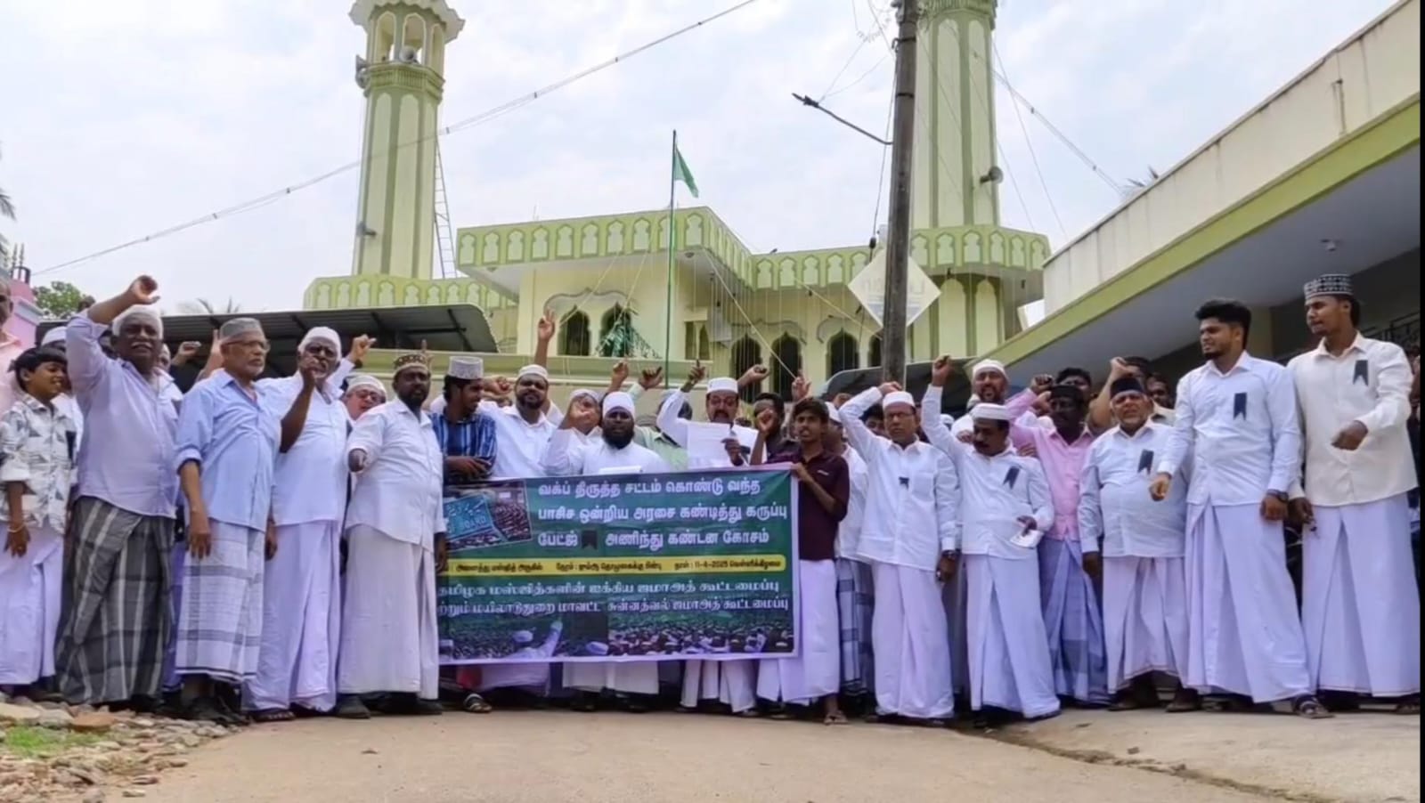 வக்ஃப் சட்டத்துக்கு எதிராக மயிலாடுதுறை மாவட்டம் முழுவதும் பள்ளிவாசல் முன்பு இஸ்லாமியர்கள் கருப்பு பேட்ச் அணிந்து தொழுகைக்குப் பின்னர் கண்டன முழக்கம்.