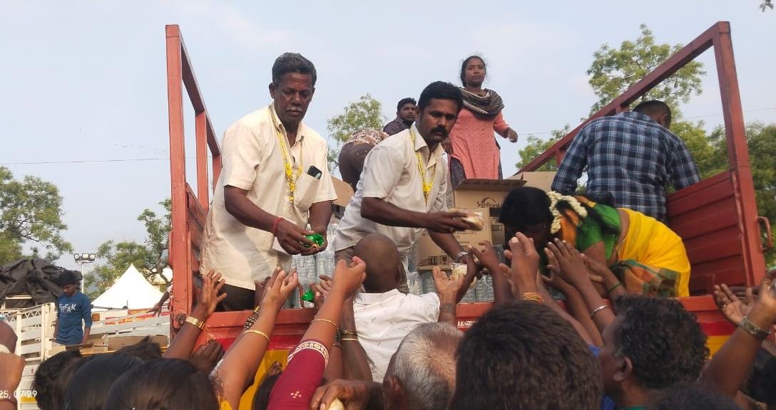 இந்த திருவிழாவில் கலந்து கொண்ட பல ஆயிரக்கணக்கான பக்தர்களுக்கு அனைத்திந்திய இந்து திருக்கோயில்கள் பாதுகாப்பு சங்கத்தின் சார்பாக தண்ணீர் பாட்டில்கள் மற்றும் பிஸ்கட் பாக்கெட்டுகள் கோதுமை பிரட் , பழ வகைகள் போன்றவை சங்கத்தின் மாவட்ட செயலாளர் சந்திரசேகர் , மாவட்ட கெளரவ செயலாளர் மாரப்பன் மற்றும் மாவட்டம் மகளிர் அணி செயலாளர் பிரியா தலைமையில் மாவட்ட பொறுப்பாளர்கள் சேகர், நடராஜ் ஒன்றிய பொறுப்பாளர்கள் குப்புராஜ் , ராஜேந்திரன் , ஆறுமுகம் , கோவிந்தராஜ் ,மோகனப்பிரியா , சொர்ணா , தமிழ்வாணன் ,சௌந்தர்ராஜன் மற்றும் உறுப்பினர்கள் , மகேஸ்வரி ,ராதாமணி , தங்கம்மாள் , புவனேஸ்வரன் , சரஸ்வதி , ஜானகி , ஸ்ரீதேவி ,ராதிகா , பழனியம்மாள் ,ஜோதி ,விஜயகுமாரி , இளவரசன்,மகாலட்சுமி, பிரபு, சீனிவாசன், சுருதி ,வேலுச்சாமி, கோகுல், பாலா, அசோக் ,கௌதம்,ஆகியோர் கலந்து கொண்டு வழங்கினர்.