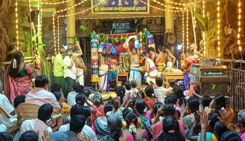 திண்டுக்கல் மாவட்டம் தாடிக்கொம்பு அருள்மிகு சௌந்தர்ராஜ பெருமாள் திருக்கோவிலில் கல்யாண செளந்தரவல்லி தாயார் சௌந்தர்ராஜ பெருமாள் திருக்கல்யாணம் வைபவம் நடைபெற்றது.
