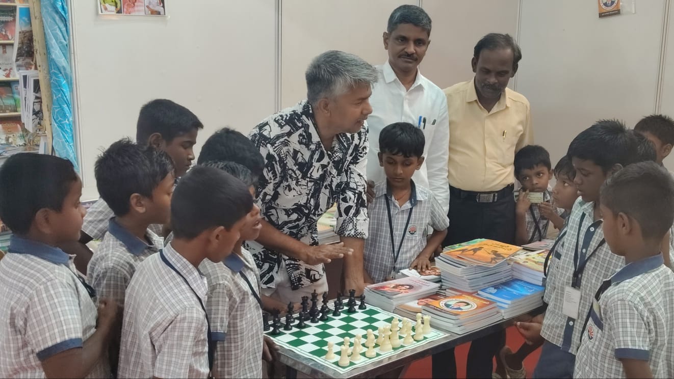 திருச்சி புத்தகத் திருவிழாவில் திருச்சி பள்ளி மாணவர்கள் வருகை புரிவதை முன்னிட்டு திருச்சி மாவட்ட எழுத்தாளர் சங்கம் சார்பில் சதுரங்க விதிமுறைகள் சொற்பொழிவு நிகழ்ச்சி நடைபெற்றது.