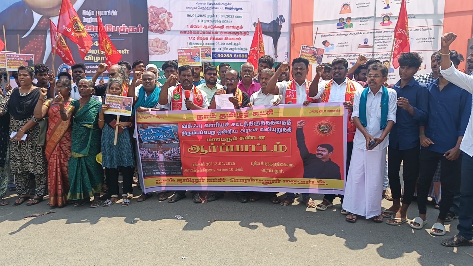 ஏப்ரல் -13 : வக்ஃப் வாரியச் சட்டத்திருத்தத்தை திரும்பப்பெற ஒன்றிய அரசை வலியுறுத்தி பெரம்பலூர் மாவட்ட நாம் தமிழர் கட்சியின் சார்பாக மாபெரும் கண்டன ஆர்ப்பாட்டம் பெரம்பலூர் புதிய பேருந்துநிலையத்தில், இன்று (13.04..2025) காலை -10.30 மணியளவில் நடைபெற்றது.
