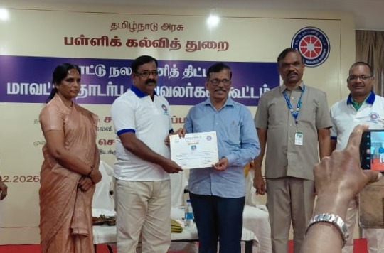 மாவட்ட தொடர்பு அலுவலர்களுக்கு புதுக்கோட்டையில் தமிழ்நாடு பள்ளிக்கல்வி இயக்குனர் முனைவர் . கண்ணப்பன் தலைமையிலும், நாட்டுநலப்பணித்திட்ட இணை இயக்குனர் சாந்தி முன்னிலையில் ஆய்வுக்கூட்டமும் , பாராட்டு விழா மற்றும் சான்றிதழ் வழங்கும் விழா நடைபெற்றது. வருகைதந்த அனைவரையும் என்.எஸ்.எஸ்.