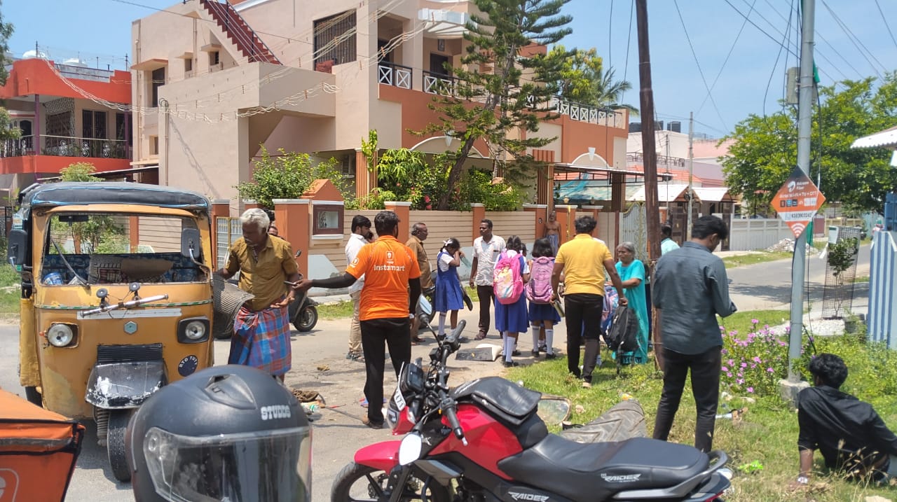 தூத்துக்குடி மாநகராட்சிக்குட்பட்ட லயன்ஸ்டவுன் இரண்டாவது தெரு பகுதியில் போக்குவரத்து அதிக அளவில் ஏற்பட்டு வருகிறது இந்த நிலையில் பள்ளி மாணவ மாணவிகளை ஏற்றி வந்த ஆட்டோவும் இருசக்கர வாகனம் நேருக்கு நேர் மோதியது இதில் ஆட்டோ கவிழ்ந்தது ஆட்டோவில் இருந்த பள்ளி மாணவ மாணவிகள் எந்த ஒரு காயமும் இன்றி தப்பித்தனர்