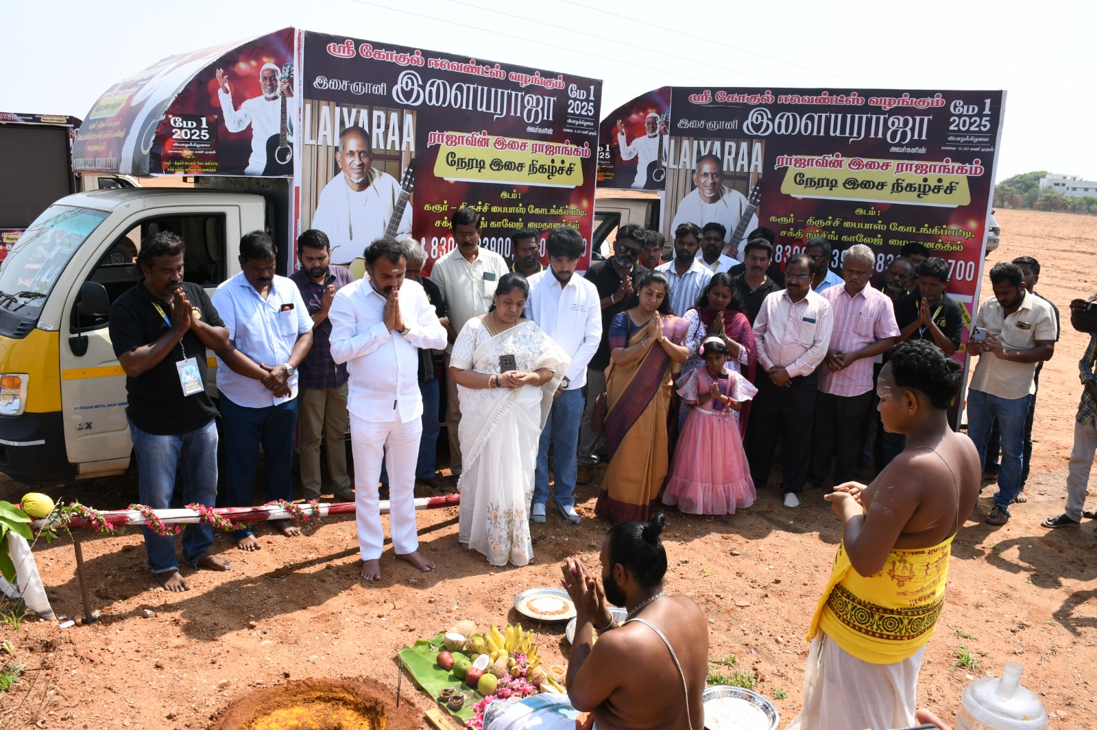 அப்பொழுது தமிழக திரை உலகின் இசைஞானி இளையராஜா சிம்பொனி இசை அரங்கேற்றத்திற்கு பிறகு முதல்முறையாக தமிழகத்தில் குறிப்பாக கரூர் மாவட்டத்தில் முதல்முறையாக நடைபெறும் இசை நிகழ்ச்சியில் பங்கேற்க வருகை தர உள்ளார். 30,000 பேர் பங்கேற்க கூடிய அளவில் அரங்குகள் அமைக்கும் பணி தொடங்கியுள்ளது. இதற்காக டிக்கெட் முன்பதிவு நடைபெற்று வருகிறது.