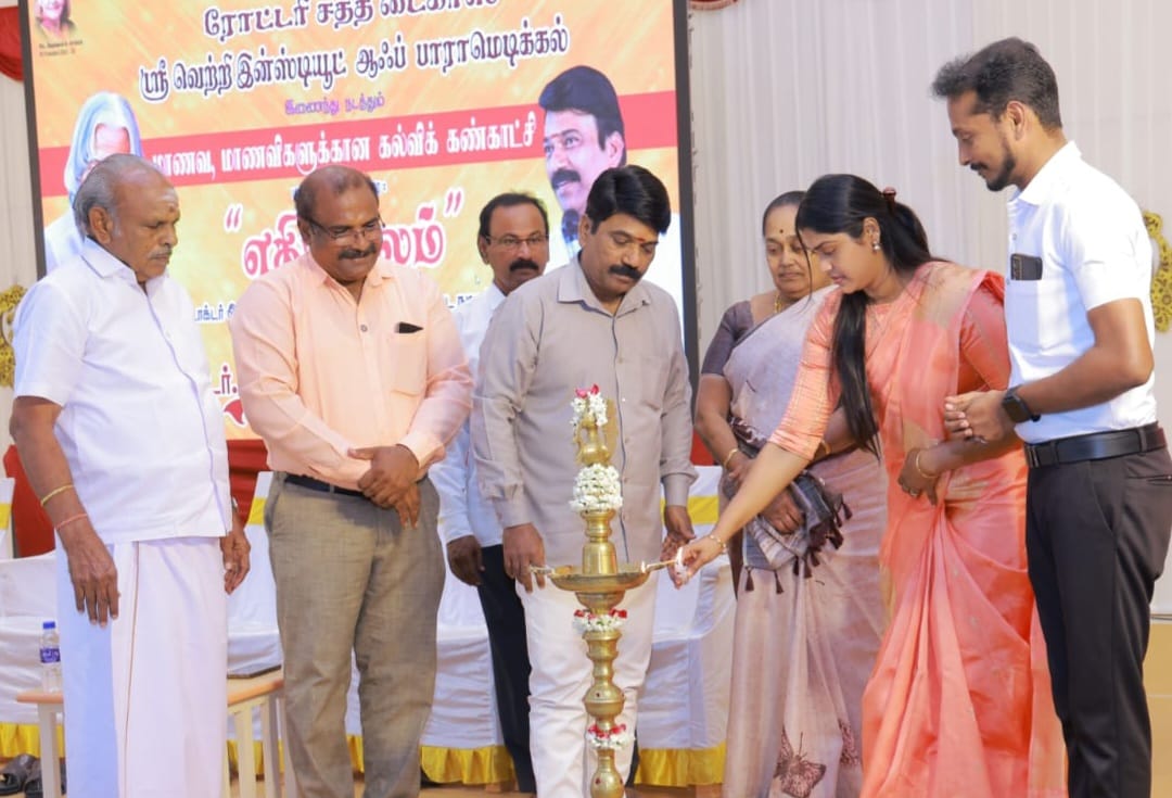 சத்தியமங்கலம் ரோட்டரி சத்தி டைகர்ஸ் மற்றும் ஶ்ரீ வெற்றி இன்ஸ்டிட்யூட் ஆஃப் பாராமெடிக்கல் சார்பில் மாணவ, மாணவிகளுக்கான கல்வி கண்காட்சி தனியார் திருமண மண்டபத்தில் நடைபெற்றது