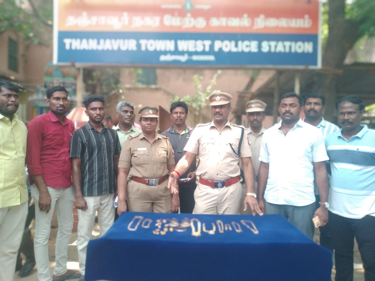 தஞ்சாவூர் திட்டை அக்ரஹாரம் பகுதியில் சரவணன் மகன் சுதாகர் என்பவரை கைது செய்து விசாரணை செய்ததில் அவரிடமிருந்து களவு போன அனைத்து நகைகளையும் கைப்பற்றப்பட்டது. இந்த வழக்கில் 8- நாட்களில் விரைவாக செயல்பட்டு குற்றவாளி கைது செய்த அனைத்து காவலர்களுக்கு தனது பாராட்டை தெரிவித்தார் தஞ்சாவூர் நகர உட்கோட்ட காவல் துணைக்கண்காணிப்பாளர் சோமசுந்தரம்.