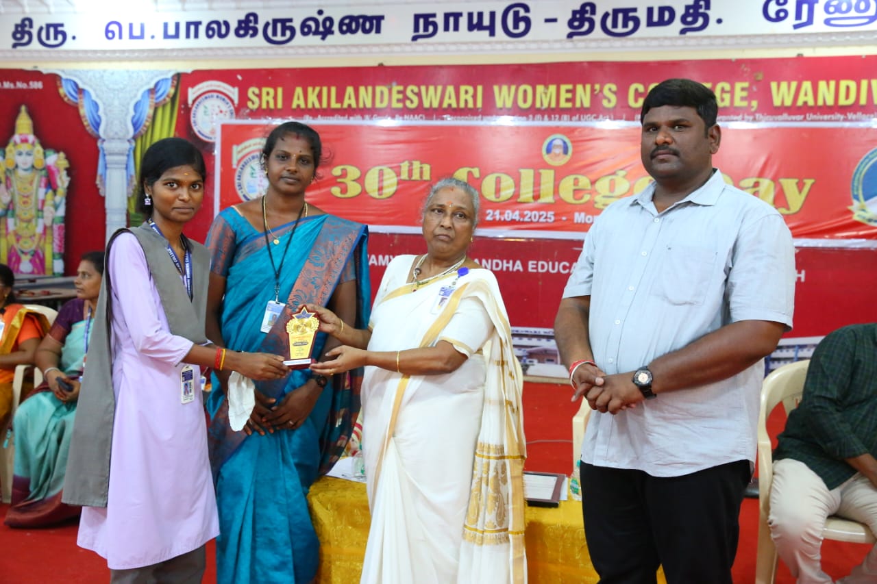 திருவண்ணாமலை மாவட்டம், வந்தவாசி ஸ்ரீ அகிலாண்டேஸ்வரி மகளிர் கல்லூரியில் 30 ஆம் ஆண்டு கல்லூரி தின விழா சிறப்பாக நடைபெற்றது. இந்த நிகழ்விற்கு கல்லூரி முதல்வர் எஸ். ருக்மணி தலைமை தாங்கினார். கல்லூரி தலைவர் மு.ரமணன், ன கல்லூரி செயலர் பிரியா ரமணன் ஆகியோர் முன்னிலை வகித்தனர். தமிழ் துறை தலைவர் ஞான மலர் வரவேற்றார்.