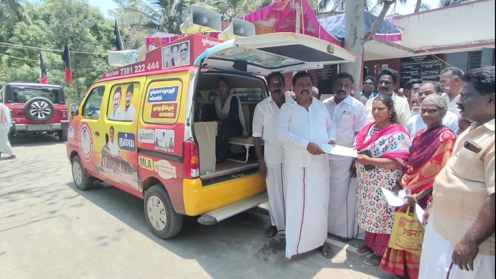 வீடு தேடி பொதுமக்களின் குறை கேட்டு வரும் வாகனம் ஊராட்சி பொதுமக்களிடம் வரவேற்பை பெற்றுள்ளது. இந்நிகழ்ச்சியில் ஒன்றிய செயலாளர்கள் ஏ.ஆர்.ராஜா, அப்துல் மாலிக் கழக நிர்வாகிகள் மற்றும் பொதுமக்கள் ஏராளமான கலந்து கொண்டனர்.
