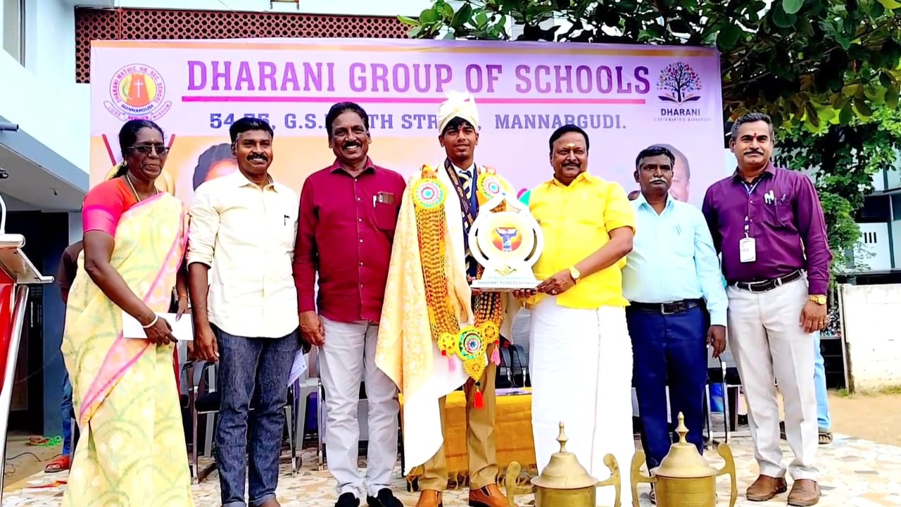 அந்த வகையில் திருவாரூர் மாவட்டம் மன்னார்குடியில் தரணி தனியார் மெட்ரிக் மேல்நிலைப் பள்ளியில் தாளாளர் எஸ்.காமராஜ் தலைமையில் கபடி போட்டியில் வெற்றிபெற்று தங்கபதக்கம் வென்று இந்தியாவிற்கும் , தமிழ்நாட்டிற்கும் பெருமைசேர்த்த கபடிவீரர் அபினேஷ் மோகன்தாஸ்க்கு பள்ளியில் பாராட்டு விழா நடைபெற்றது.