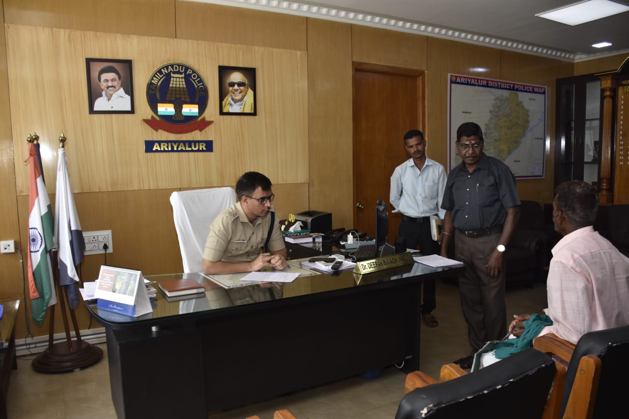 அதன்படி புதன்கிழமையான இன்று அரியலூர் மாவட்ட காவல் அலுவலகத்தில் மனு கொடுக்க வந்த 39 மனுதாரர்கள் தங்கள் குறைகளை மாவட்ட காவல் கண்காணிப்பாளர் டாக்டர்.தீபக் சிவாச் I.P.S., அவர்களிடம் நேரடியாக தெரிவித்து புகார் மனு அளித்தனர்.