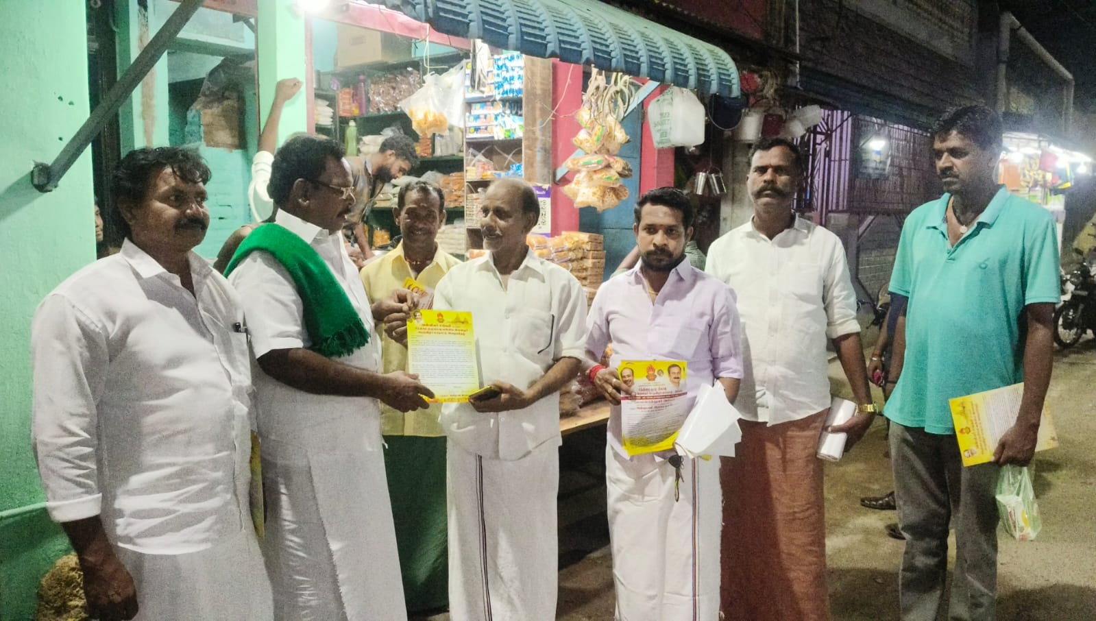 வலங்கைமான் பேரூராட்சி பகுதியில் சித்திரை முழுநிலவு மாநாடு குறித்த துண்டு பிரசுரங்களை பாட்டாளி மக்கள் கட்சி, தமிழ் நாடு உழவர் பேரியக்கத்தின் சார்பில் கடைகள் மற்றும் வீடு வீடாக சென்று வழங்கினர்.