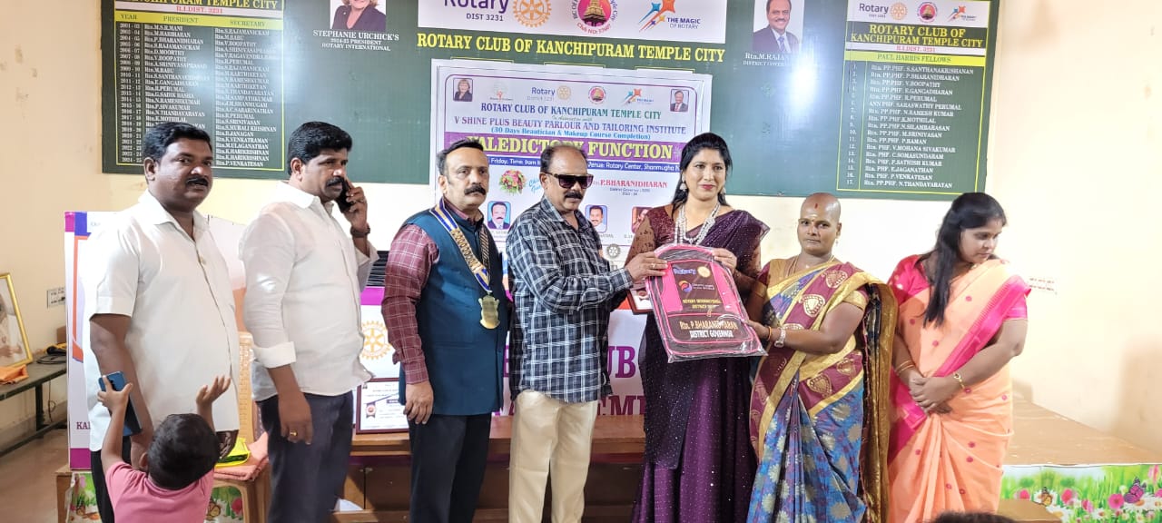 ரோட்டரி கிளப் ஆஃப் காஞ்சிபுரம் டெம்பிள் சிட்டி சங்கமும், வி ஷைன் பிளஸ் பியூட்டிபார்லர் மேக் அப் கோர்ஸ் இணைந்து வழங்கும் இலவச பியூட்டி பார்லர் மற்றும் மேக்கப் பயிற்சி முகாம் கடந்த 30 நாட்கள் நடைபெற்று வந்தது.