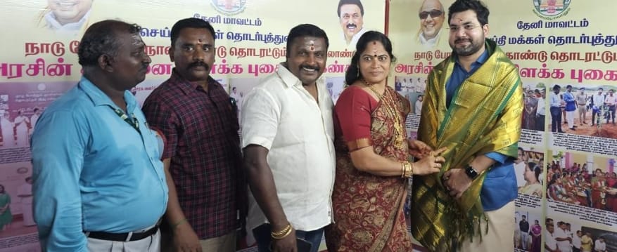 தேனி மாவட்டம் வீரபாண்டியில் ஸ்ரீ கெளமாரியம்மன் திருக்கோவில் திருவிழாவில் மாவட்ட செய்தி மக்கள் தொடர்புத் துறை சார்பில் அமைக்கப்பட்டிருந்த தமிழக அரசின் நான்காம் ஆண்டு சாதனை விளக்க புகைப்பட கண்காட்சியை பார்வையிட வந்த மாவட்ட ஆட்சித் தலைவர் ரஞ்ஜீத் சிங் அவர்களுக்கு வீரபாண்டி பேரூராட்சி மன்ற தலைவர் கீதாசசி சால்வை அணிவித்து வரவேற்றார்.உடன் பேரூராட்சி செயல் அலுவலர் வெ.கணேசன் பேரு ராட்சி மன்ற தலைவரின் கணவர் சசி உள் பட பலர் உடன் இருந்தனர்