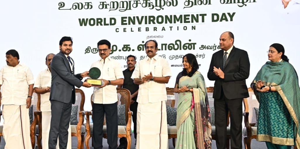 தேனி மாவட்ட ஆட்சித் தலைவருக்கு தமிழக முதல்வர் பசுமை விருது வழங்கி பாராட்டு தமிழகத்தின் தலைநகரான சென்னை வர்த்தக மையத்தில் சுற்றுச்சூழல் காலநிலை மாற்றம் மற்றும் வனத்துறையில் சார்பில் நடைபெற்ற உலக சுற்றுச்சூழல் தின விழாவில் மாவட்டத்தில் சுற்றுச்சூழல் பாதுகாப்பிற்காக சிறப்பாக செயலாற்றியதற்காக அந்த சேவையை ஊக்குவிக்கும் விதமாக தேனி மாவட்ட கலெக்டர் ரஞ்ஜீத் சிங் அவர்களுக்கு தமிழக முதல்வர் மு. க ஸ்டாலின்.பசுமை விருது வழங்கி கௌரவித்ததார்
