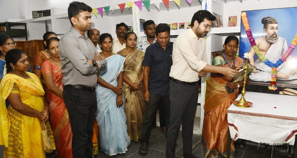 தேனி மாவட்ட ஆட்சியர் அலுவலகத்தில் புதியதாக அமைக்கப்பட்டு உள்ள நூலகத்தினை குத்துவிளக்கு ஏற்றி வைத்து பார்வையிட்டார் தமிழக முதல்வர் மு.க. ஸ்டாலின் சென்னையில் இருந்து பொது நூலக இயக்கம் சார்பில் கூடுதல் நூலக கட்டிடங்கள் மற்றும் சிறப்பு நூல்கங்களை காணொளி காட்சி வாயிலாக திறந்து வைத்ததை தொடர்ந்து தேனி மாவட்ட ஆட்சியர் அலுவலகத்தில் புதியதாக அமைக்கப்பட்டுள்ள நூலகத்தில் மாவட்ட ஆட்சித் தலைவர் குத்து விளக்கேற்றி வைத்து பார்வையிட்டார்.