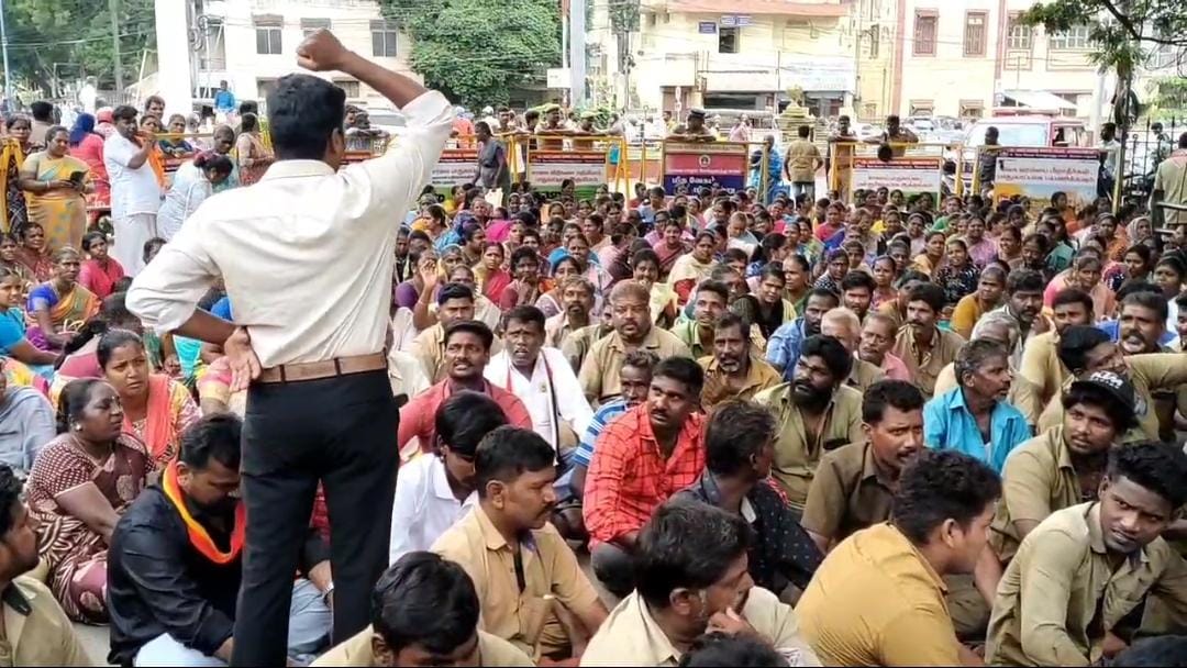 ஒப்பந்த தூய்மை பணியாளர்கள் அனைவரும் பணி நிரந்தரப்படுத்துவார்கள் என்ற 2021-ம் ஆண்டு திமுக அறிவித்த தேர்தல் வாக்குறுதியை நிறைவேற்ற வலியுறுத்தியும்