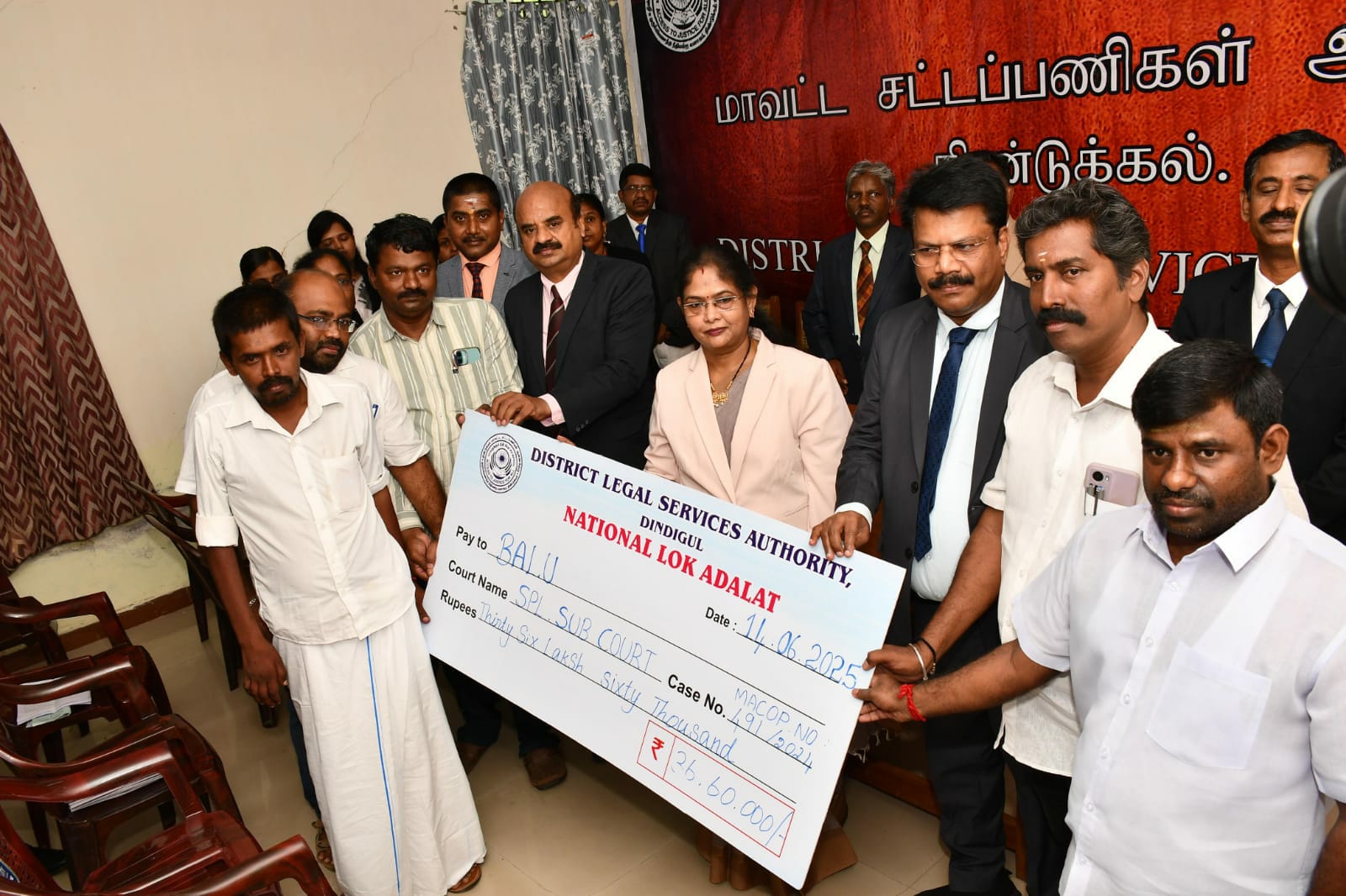 திண்டுக்கல் மாவட்ட நீதிமன்ற வளாகத்தில் மாண்புமிகு தேசிய சட்டப் பணிகள் ஆணைக்குழு குழு மாண்புமிகு மாநில சட்டபணிகள் ஆணைக்குழு வின் உத்தரவின் படி திண்டுக்கல் மாவட்டத்தில் நடைபெற்ற மாநில அளவிலான மக்கள் நீதிமன்றம் நிகழ்ச்சி சட்டபணிகள் ஆணைக்குழுவின் தலைவரும்,மாவட்ட முதன்மை நீதிபதி.முத்துசாரதா அவரது தலைமையில் நடைபெற்றது.