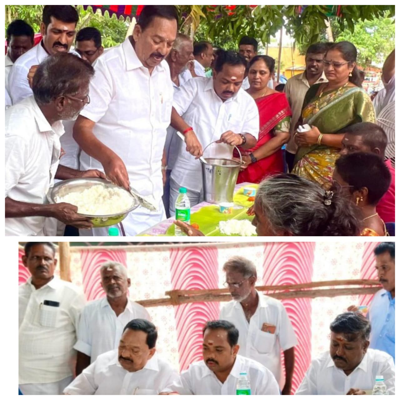 தமிழ்நாடு முதலமைச்சர் மு க ஸ்டாலின் அறிவுறுத்தலின்படி பஞ்சமி தினத்தன்று கோயில்களில் நாள் முழுதும் அன்னதானம் வழங்கும் திட்டத்தை மாவட்டந்தோறும் மாவட்ட செயலாளருக்கு உத்தரவிட்ட நிலையில் அன்னதான நிகழ்ச்சி தொடங்கி வைக்கப்பட்டது.