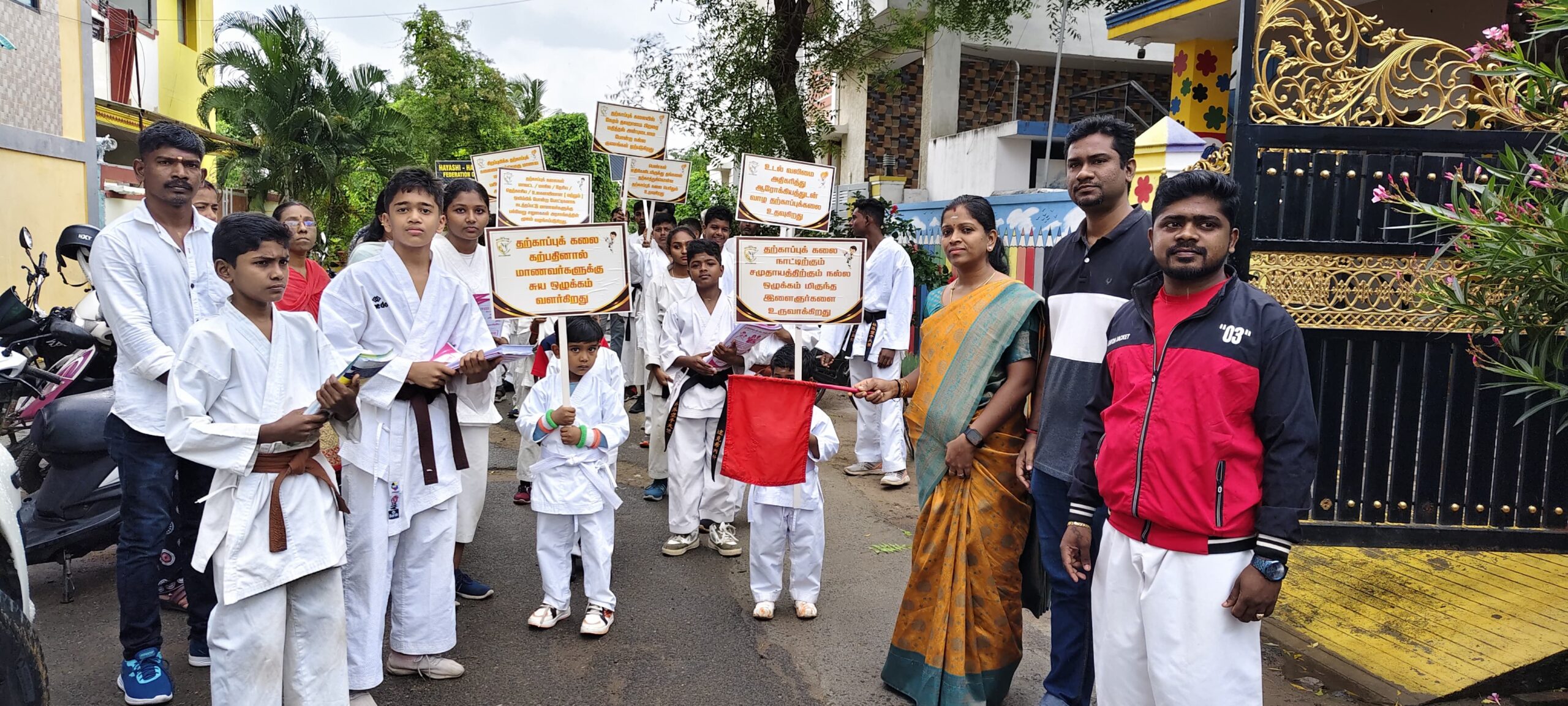 பள்ளி மாணவ மாணவியர்கள் தற்காப்பு கலை கற்பதன் அவசியம் குறித்து விழிப்புணர்வு ஏற்படுத்தும் வகையில் நடைபெற்ற இந்த நிகழ்வில் 4 வயது முதலான பள்ளி மாணவ மாணவியர்கள் கலந்து கொண்டனர்,