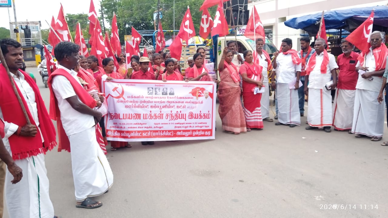 அரியலூர் ஒன்றிய மார்க்சிஸ்ட் கம்யூனிஸ்ட் கட்சியின் சார்பில் நகர் முழுவதும் நடைபயண மக்கள் சந்திப்பு இயக்கம் சிறப்பாக நடந்தது அருண்பாண்டியன் தலைமை தாங்கினார் மாநில குழு நாகராஜன் மாவட்ட செயலாளர் இளங்கோவன் மூத்த தோழர் சிற்றம்பலம் மாவட்ட செயற்குழு தோழர் துரைசாமி அருணன் கிருஷ்ணன் உட்பட 200க்கும் மேற்பட்டோர் நடைபயணத்தில் கலந்து கொண்டனர் மக்களின் வாழ்வாதார கோரிக்கைகளை நிறைவேற்ற ஒன்றிய மாநில அரசுகளை வலியுறுத்தி இந்த நடைபயணம் அரியலூரில் நடந்தது