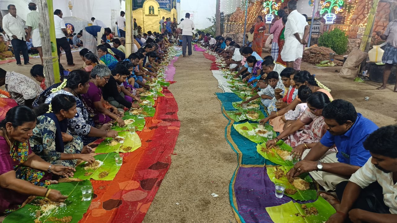 நேற்று முன்தினம் இரவு 8 மணி முதல் நேற்று அதிகாலை 3 மணி வரை விடிய விடிய கறி விருந்து நடைபெற்றது. மேலும் இந்த அன்னதானத்தில் குழந்தை இல்லாதவர்கள் அசன விருந்து சாப்பிடுபவர்களிடம் மடியேந்தி கறிசாதத்தை பெற்று, அதனை சாப்பிடுவார்கள்.