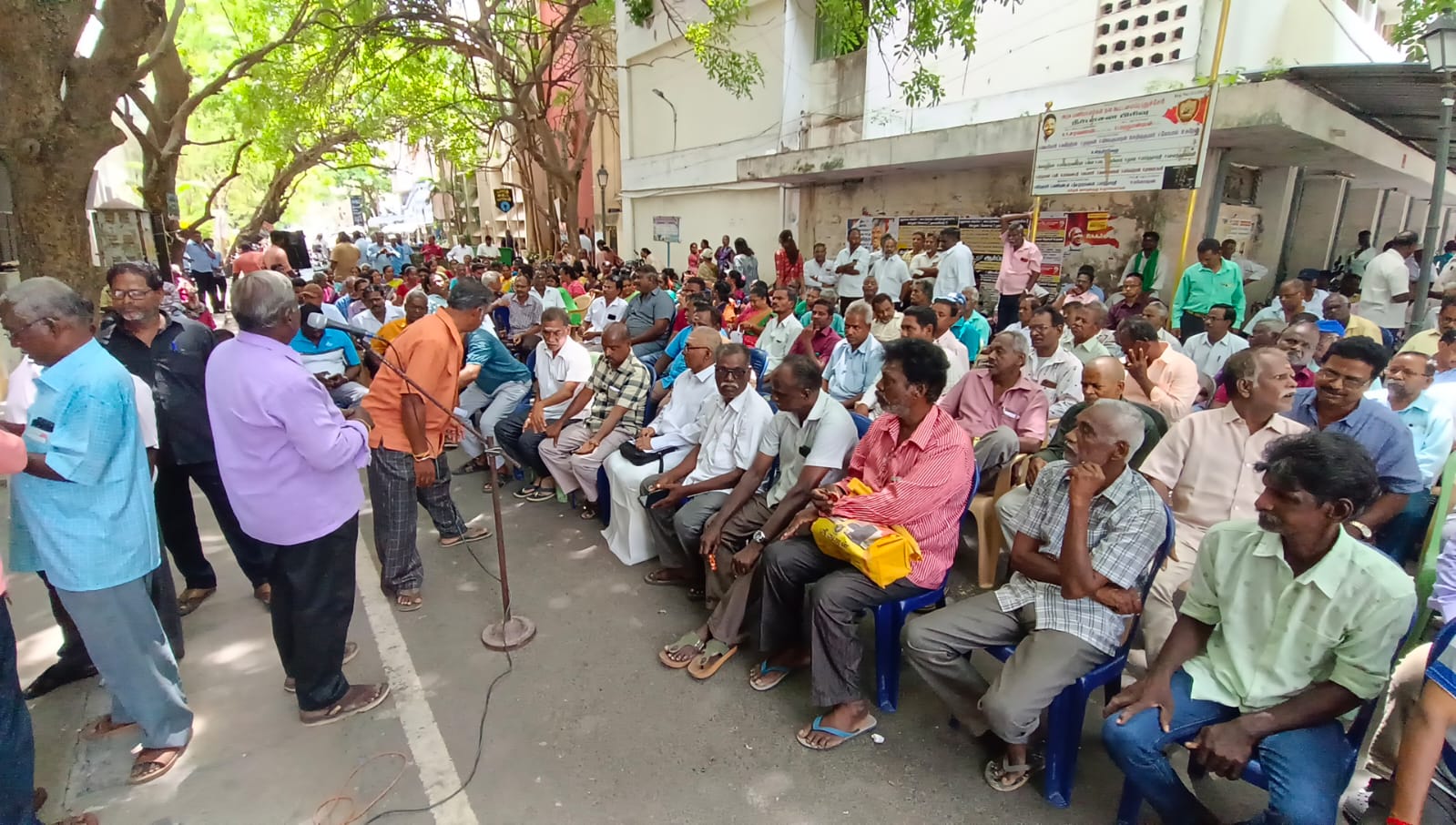 ஓய்வு பெற்ற ஊழியர்களுக்கு அரசே நேரடியாக ஓய்வூதியம் மற்றும் நிலவை தொகைகளை வழங்க வேண்டும், நீண்ட காலமாக பணியாற்றி வரும் தினக்கூலி ஊழியர்களை பணி நிரந்தரம் செய்ய வேண்டும் உள்ளிட்ட பல்வேறு கோரிக்கைகளை வலியுறுத்தி 200 க்கும் மேற்பட்ட நகராட்சி மற்றும் கொம்யூன் பஞ்சாயத்து ஊழியர்கள் உள்ளாட்சி துறை தலைமை அலுவலகம் முன்பு ஒரு நாள் விடுப்பு எடுத்து அரசுக்கு எதிராக கண்டன ஆர்ப்பாட்டத்தில் ஈடுபட்டனர்.