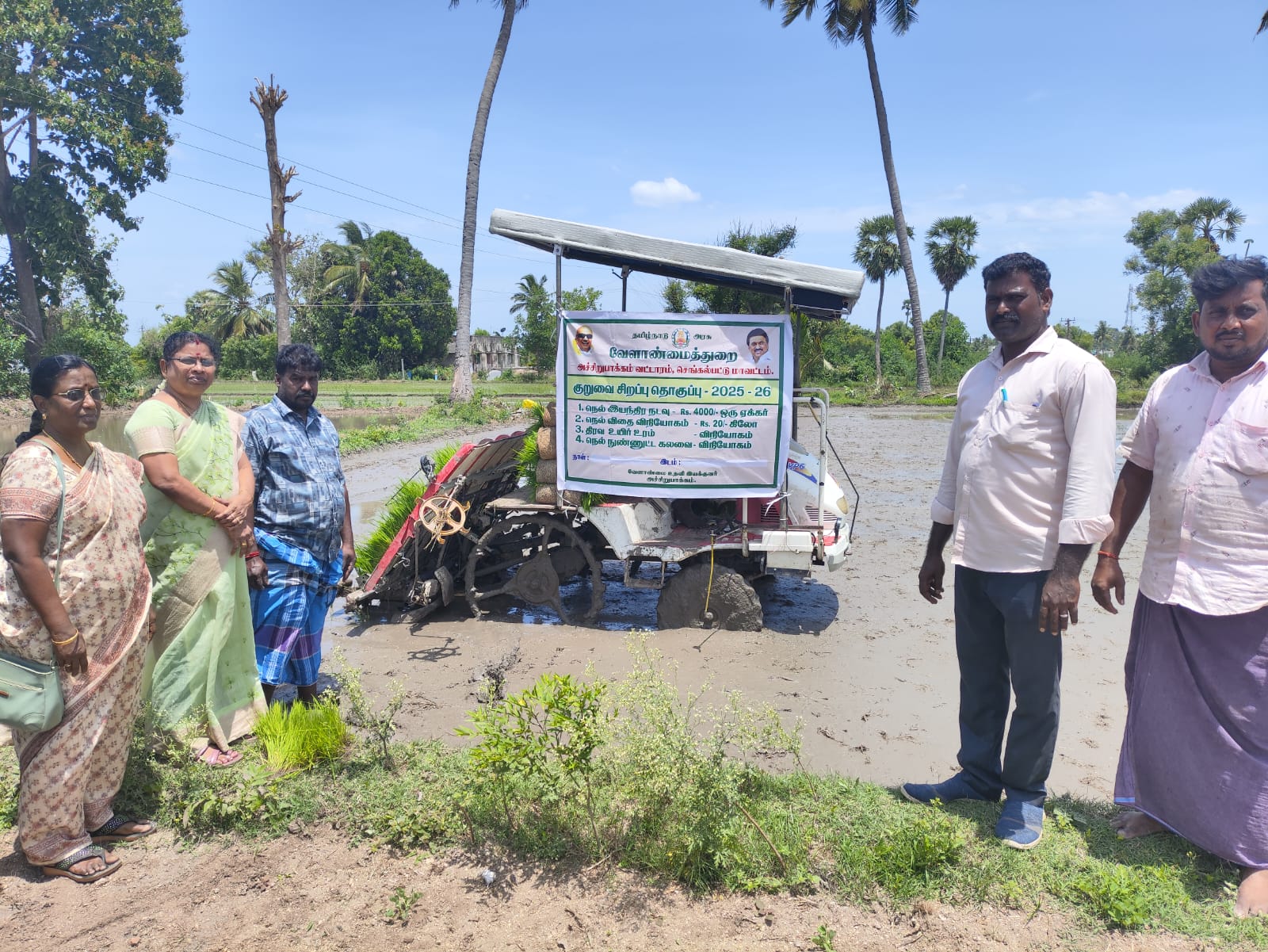 அச்சரம்பாக்கம் வட்டாரத்தில் ஒரத்தியில் குறுவை சாகுபடியில் சோனியா காந்தி என்பவர் நெல் இயந்திர நடவு செய்ததை செங்கல்பட்டு வேளாண்மை இணை இயக்குநர் பிரேம் சாந்தி பார்வையிட்டார்.
