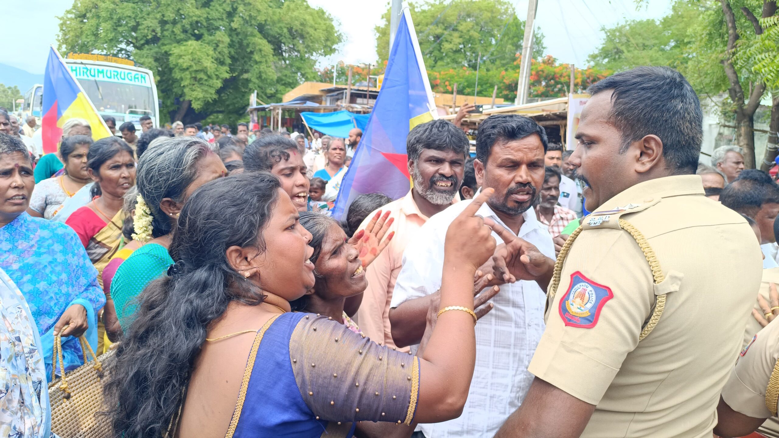 அருந்ததியர் மக்களுக்கு இலவச வீட்டுமனை வழங்க கோரி சாலை மறியல், நமது தேசம் கட்சியினர் போலீசாரிடம் கடும் வாக்குவாதம்.
