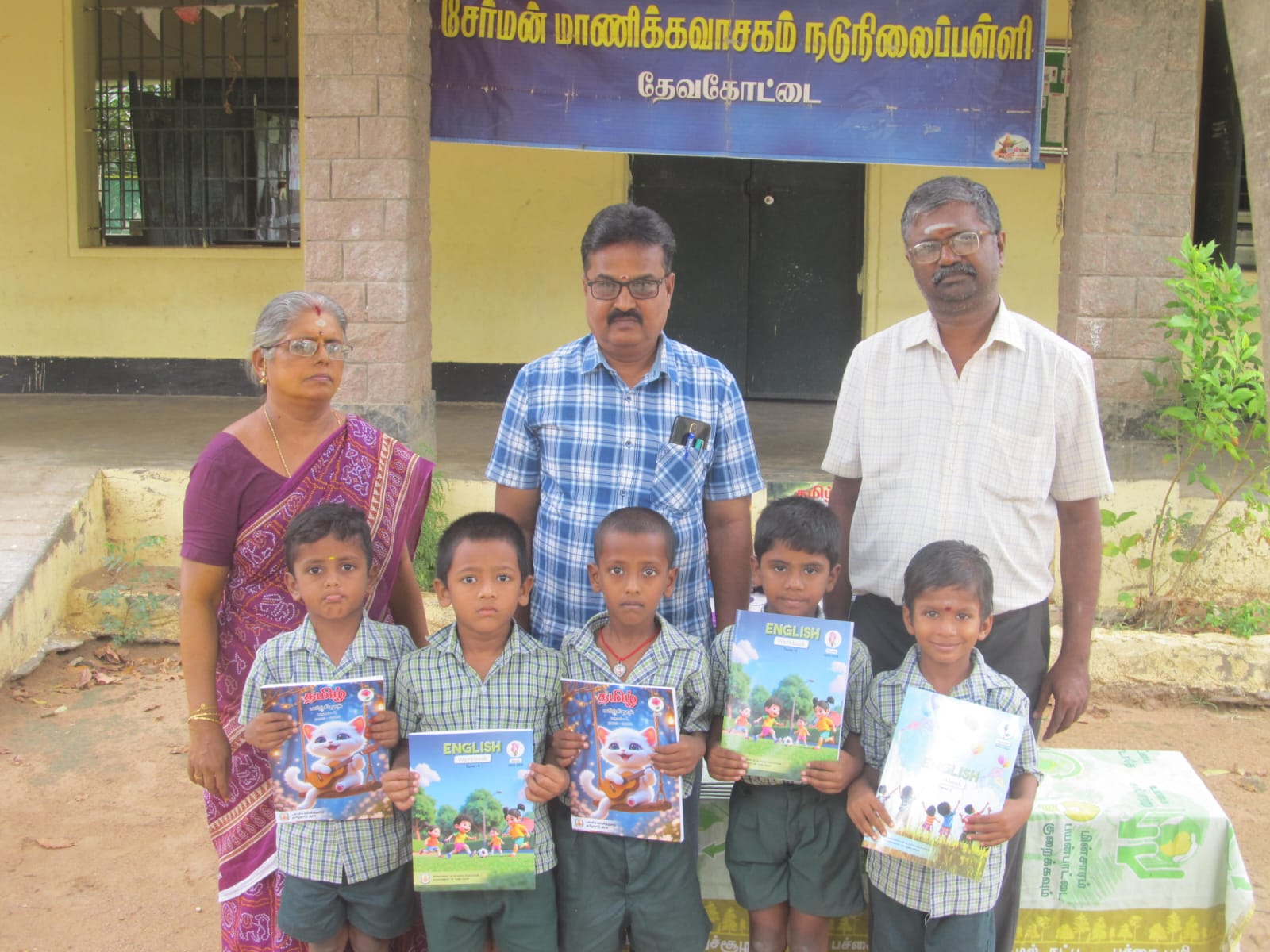 பள்ளி மாணவர்களுக்கு அரும்பு ,மொட்டு,மலர் பயிற்சி கையேடுகள் பள்ளிகளில் வழங்கப்பட்டது. தேவகோட்டை சேர்மன் மாணிக்க வாசகம் நடுநிலைப் பள்ளியில் தேவகோட்டை வட்டார வளமைய மேற்பார்வையாளர் கார்த்திகேயன் மற்றும் பள்ளி தலைமை ஆசிரியர் லெ .சொக்கலிங்கம் , பள்ளியின் பெற்றோர் ஆசிரியர் கழக உறுப்பினர்கள்  எண்ணும் எழுத்தும் பயிற்சி கையேடுகளை மாணவர்களுக்கு     வழங்கினார்கள் .ஒன்றாம் வகுப்பு முதல் ஐந்தாம்  வகுப்பு வரை புத்தகங்கள்  மாணவர்களுக்கு வழங்கப்பட்டது.