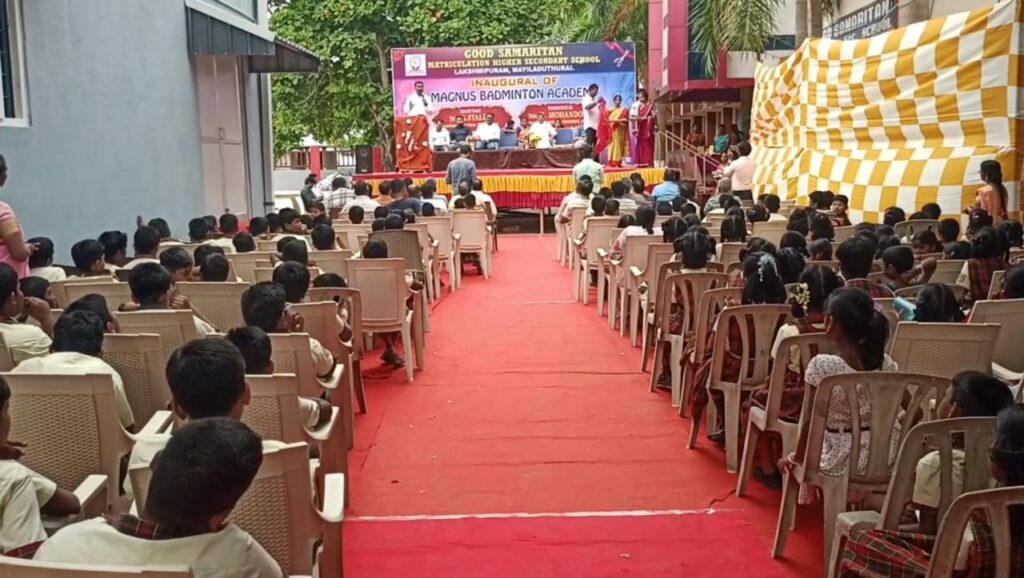 மயிலாடுதுறை மாவட்டம் மயிலாடுதுறை அருகே லட்சுமிபுரத்தில் உள்ள குட்சமாரிட்டன் மெட்ரிக் மேல்நிலைப் பள்ளியில் மாணவர்களின் விளையாட்டுத் திறனை மேம்படுத்தும் வகையில் ரூ. 1 கோடி மதிப்பில் மேக்னஸ் இறகு பந்து அகடமி என்ற பெயரில் உள்விளையாட்டு அரங்கம் அமைக்கப்பட்டு திறப்பு விழா நடைபெற்றது.