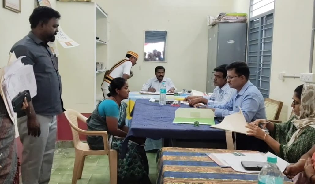 நேர்காணலை வட்டார வளர்ச்சி அலுவலர்கள் வட்டாட்சியர் முன்னிலையில் நடத்தினர் நேர்காணல் தொடங்கியது முதல் விண்ணப்பதார்கள் உள்ளே சென்ற பிறகு விண்ணப்பதாரருக்கு இருக்கை கொடுக்காமல் வட்டார வளர்ச்சி அலுவலர்கள் இருக்கையில் அமர்ந்து விண்ணப்பதாரரை நிற்க வைத்து நேர்காணல் நடத்தினர்