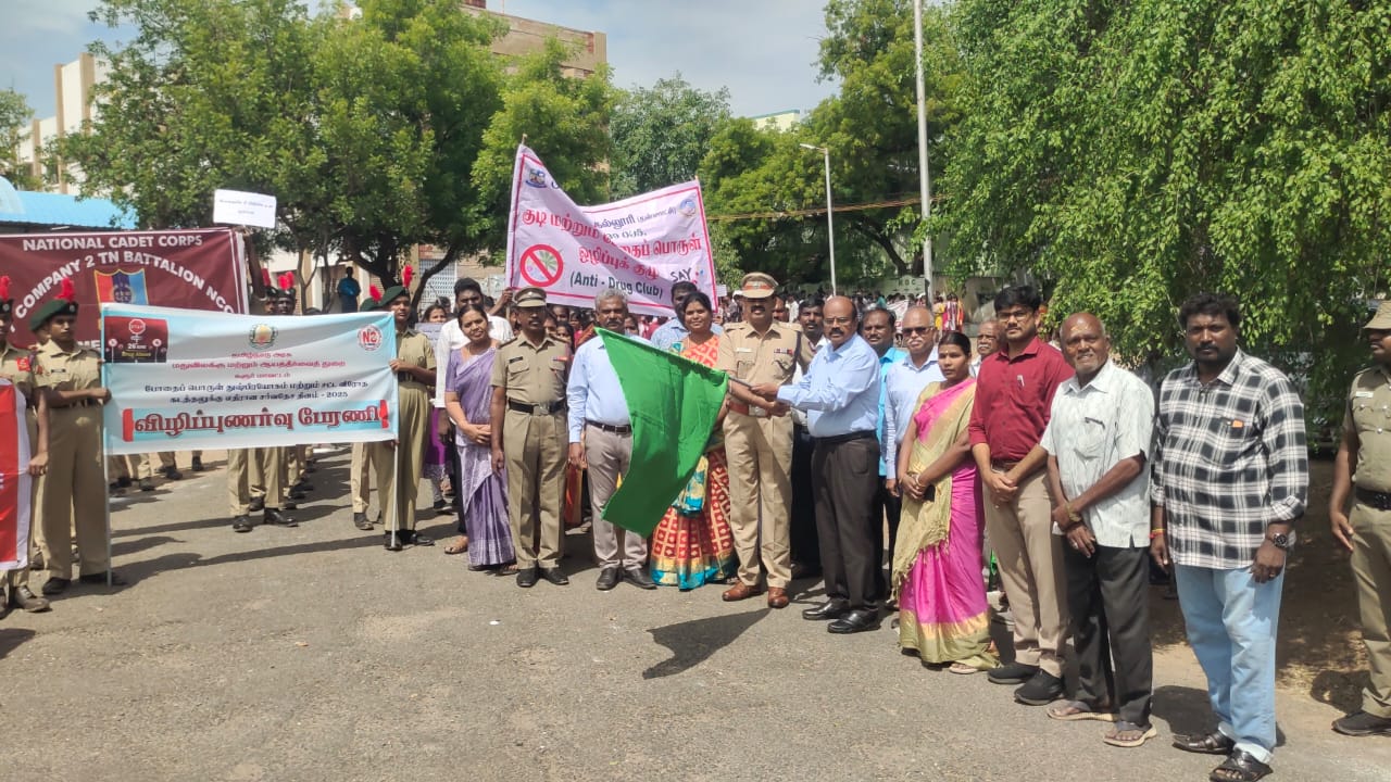 மீ. தங்கவேல்,மாவட்ட காவல் கண்காணிப்பாளர் பெராஸ்கான் அப்துல்லா ஆகியோர் கொடி அசைத்து விழிப்புணர் பேரணியை தொடங்கி வைத்தனர்.
