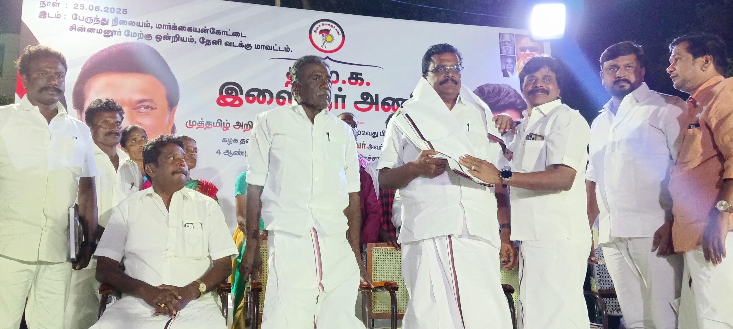 மார்க்கையன் கோட்டை பேரூராட்சி மன்றத் தலைவர் பேரூர் திமுக செயலாளர் ஒ.ஏ. முருகன் சின்னமனூர் மேற்கு ஒன்றிய செயலாளர் கன்னியம் பட்டி சி. முருகேசன் வடக்கு மாவட்ட இளைஞரணி அமைப்பாளர் ஏ.ஆஜிப்கான் சின்னமனூர் மேற்கு ஒன்றிய இளைஞரணி அமைப்பாளர் ரா.ராஜேந்திரபிராசத் மாவட்ட பிரதிநிதி சி.மாதவன் ஆகியோர் முன்னிலை வகித்தனர்.