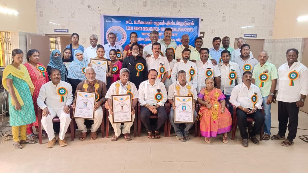 புதுச்சேரி 26 . 6 . 2025 வியாழக்கிழமை காலை 10 . 00 மணிக்கு சுப்பையா திருமண மண்டபத்தில் மாநிலத்தலைவர் தந்தைபிரியன் தலைமையில் சர்வதேச பொதுச் செயலாளர் Dr சுரேஷ்குமார் முன்னிலையில் நோக்கவுரை நிகழ்த்த நிர்வாகிகளை புதுச்சேரி அரசின் பொதுப்பணித்துறை அமைச்சர் மாண்புமிகு லட்சுமி நாராயணன் அவர்கள் ஜாலிஹோம் நிறுவன இயக்குநர் புருனோ இளங்கோ லட்சுமி பவுண்டேசன் நிறுவனர் இளங்கோ சாரோன் சொசைட்டி ஆப் பாண்டிச்சேரி நிறுவன செயலாளர் மோகன் மற்றும் சமுதாயத்தின் சாரல் சேவை மையம் மகளிர் அணிக்கு ஆகிய சமூகசேவர்களுக்கு மக்கள் சேவகர் விருது வழங்கி சிறப்பு செய்துவைத்தார்