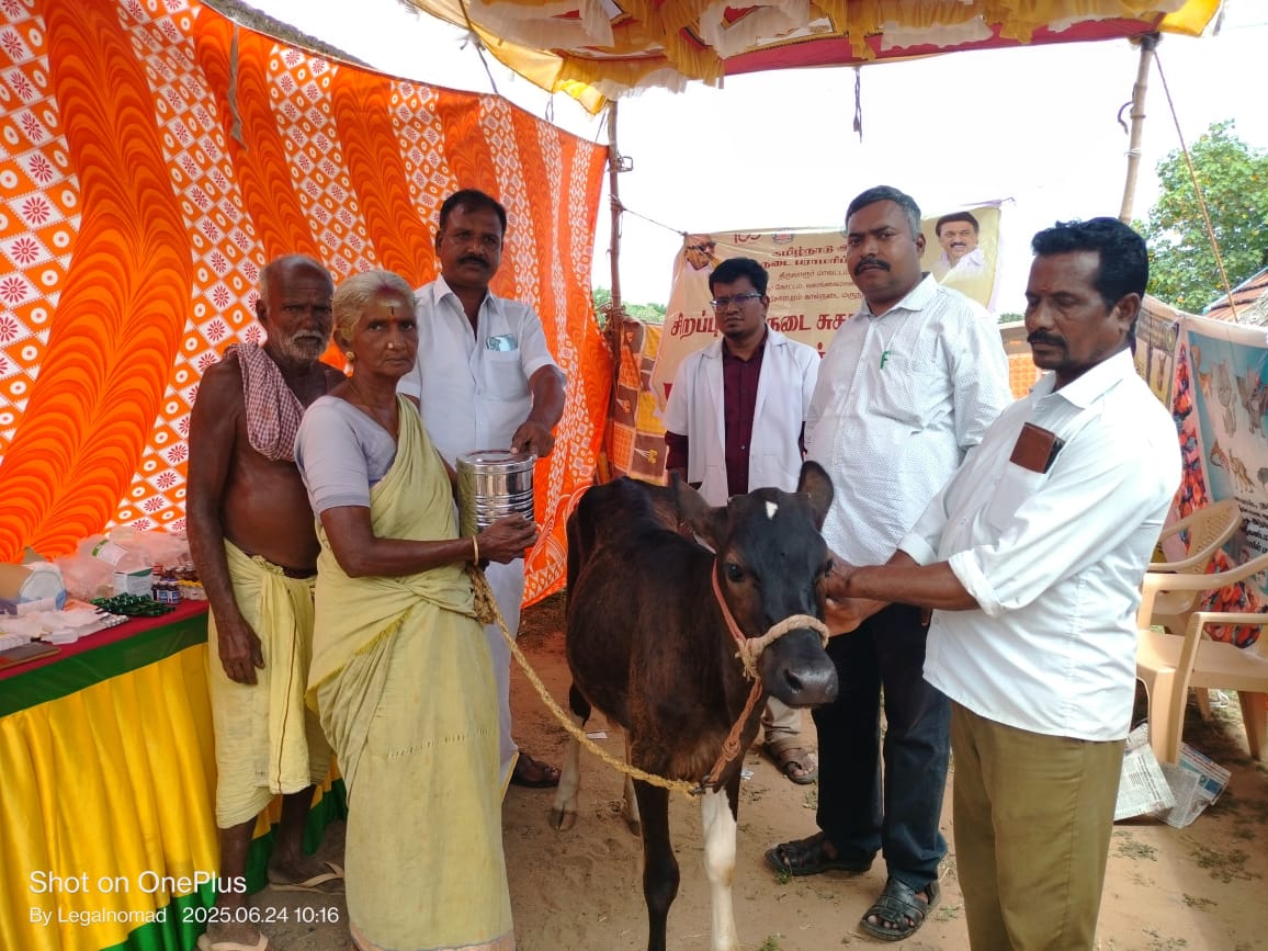 வலங்கைமான் கால்நடை மருத்துவர் மரு.சேனாதிராஜா பரிசுகளை வழங்கினார். மருத்துவர் சக்திவேல், சங்கவி, சிவ.செளர்ந்தர்யா, கலையரசி உள்ளிட்ட கால்நடை உதவி மருத்துவர்கள் குழு, கால்நடைகளுக்கு கோமாரி நோய் தடுப்பூசி, சினை ஊசி, சினை பரிசோதனை, குடற்புழு நீக்கம், மலடு நீக்க சிகிச்சை மற்றும் நோய் சிகிச்சை அளித்தனர். கால்நடை பராமரிப்பு உதவியாளர்கள் செந்தில், மாரியப்பன், இந்திரா ஆகியோர் சிகிச்சை அளித்தனர். 250 க்கும் மேற்பட்ட கால்நடைகளுக்கு சிகிச்சை அளிக்கப்பட்டது.