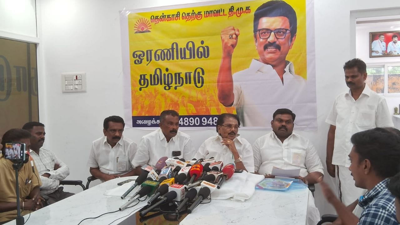 தமிழக முதலமைச்சரும் திமுக தலைவருமான மு க ஸ்டாலின் அறிவித்துள்ள ஓரணியில் தமிழ்நாடு திட்டம் குறித்து தமிழ்நாடுபேரிடர் மேலாண்மை துறை அமைச்சர் கேகேஎஸ்எஸ்ஆர் ராமச்சந்திரன் தென்காசியில் செய்தியாளர்களிடம் பேசினார்.
