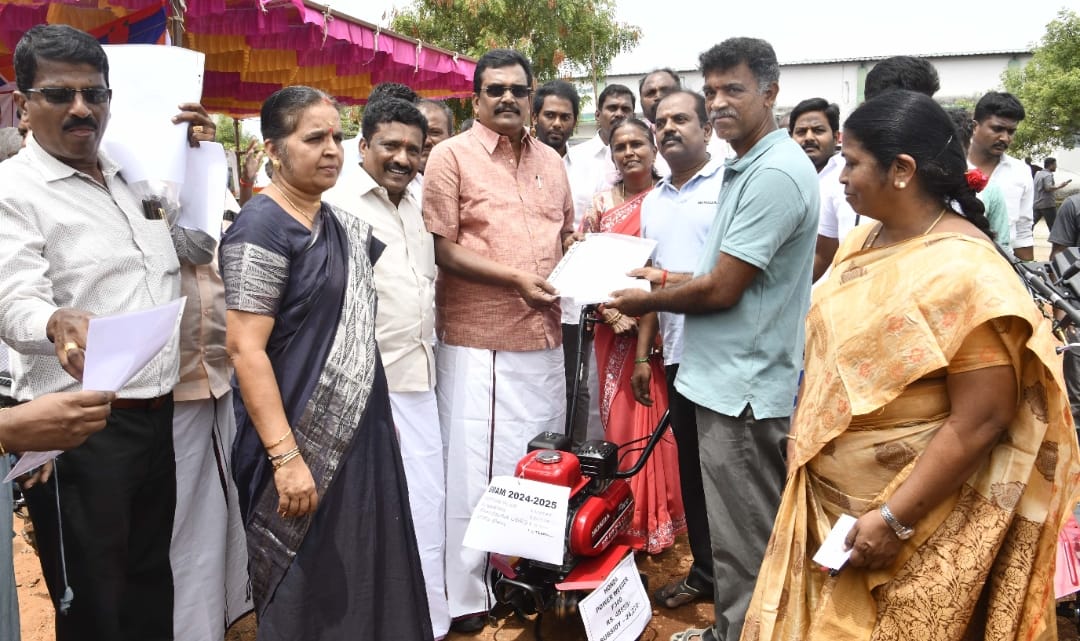தேனியில் விவசாயிகளுக்கு களை எடுக்கும் கருவிகளை வழங்கிய எம்பி தேனி மாவட்டம் தேனி அருகே உள்ள சுக்குவாடன் பட்டி ஒழுங்குமுறை விற்பனை வளாகத்தில் வேளாண்மைப் பொறியியல் துறை சார்பில் வேளாண் இயந்திரங்கள் மற்றும் கருவிகள் பாரமாரிப்பு குறித்த மாவட்ட அளவிலான நடைபெற்ற முகாமில் தேனி பாராளுமன்ற தொகுதி உறுப்பினர் தங்க தமிழ்ச்செல்வன் எம்பி பெரியகுளம் சட்டமன்ற உறுப்பினர் கே எஸ் சரவணகுமார் மாவட்ட வருவாய் அலுவலர் மகாலட்சுமி ஆகியோர் முன்னிலையில் பயனாளிகளுக்கு மானியத்துடன் கூடிய களை எடுக்கும் கருவிகளை வழங்கினார்கள்